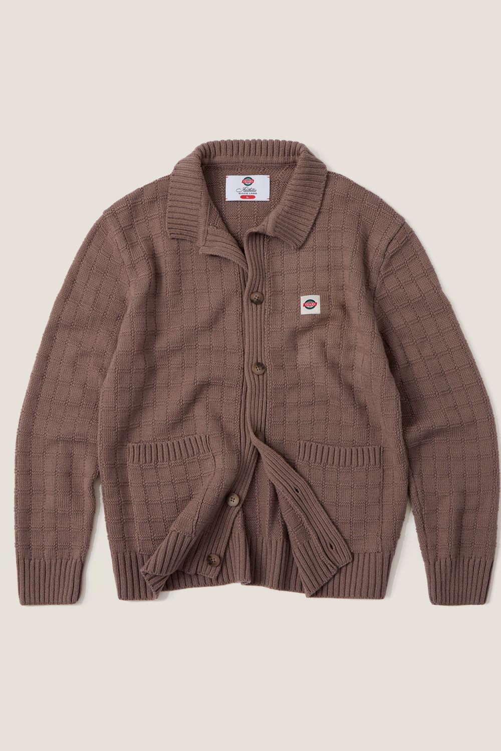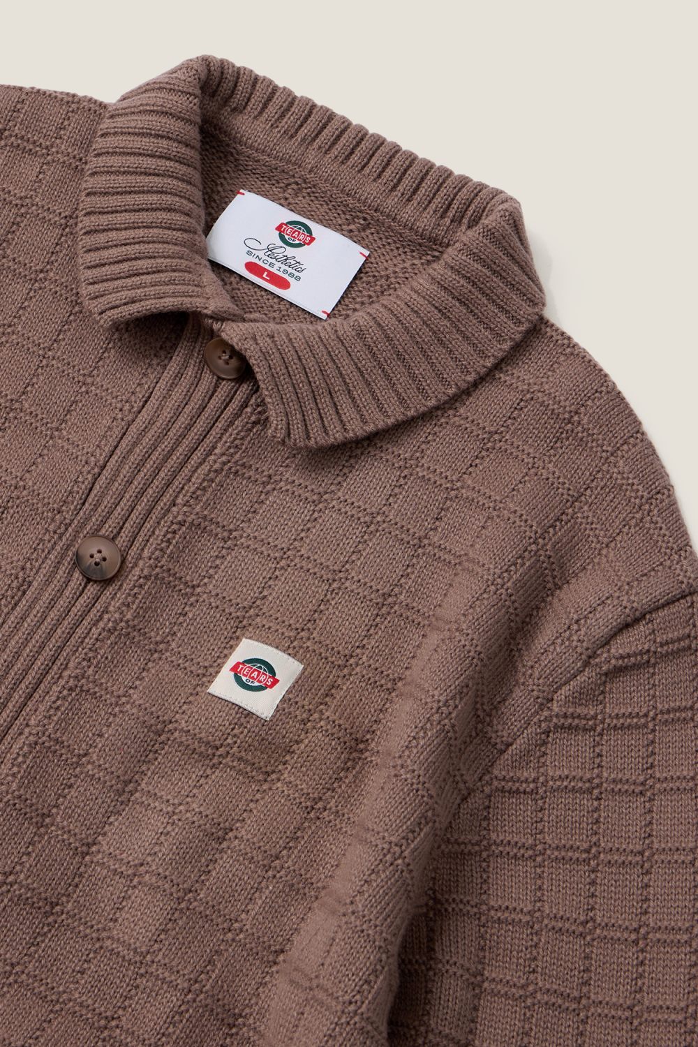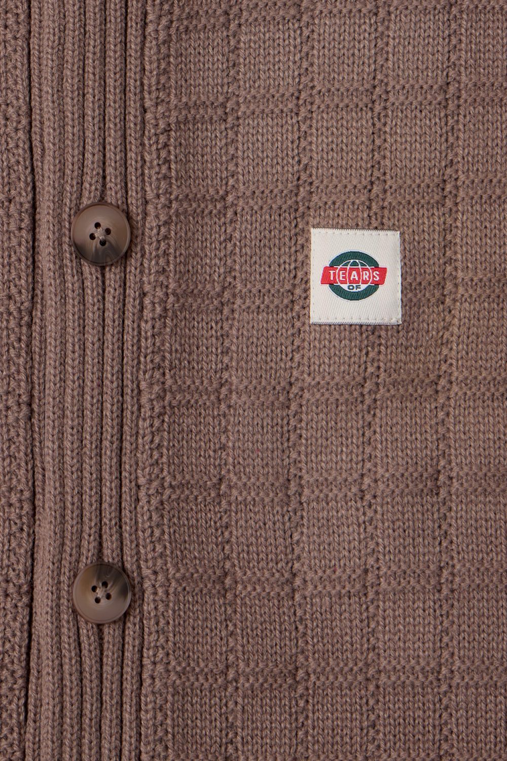 Вязаный кардиган из смесовой шерсти, отложной воротник, накладные карманы на передней части изделия, пуговицы с контрастным эмбоссированием. Ажурная вязка. Цвет: бежевый.