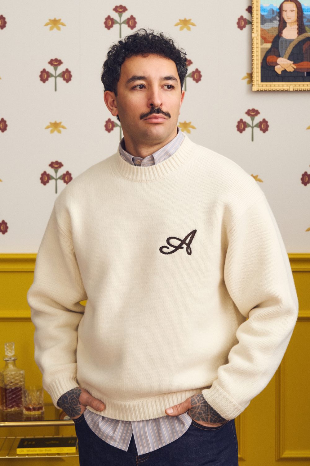 Свитер из 100% натуральной шерсти из коллекции Tears of Bloom. О-образный вырез. Контрастная вышивка литера А в области груди. Эластичные манжеты на рукавах и по нижнему краю изделия. Цвет: молочный.