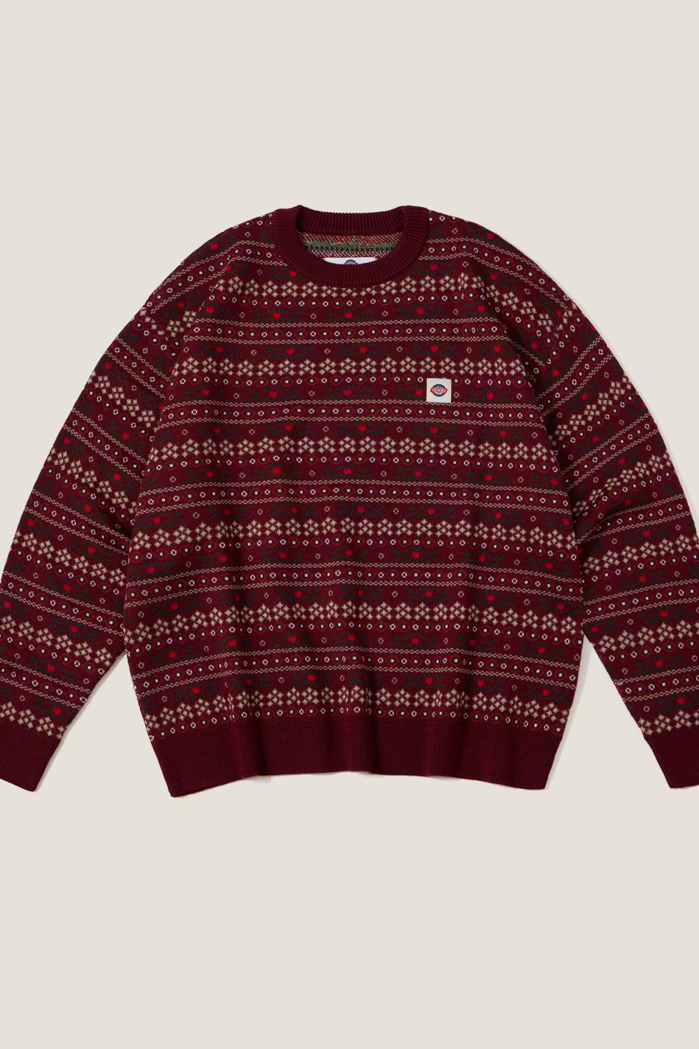 Лимитированный новогодний свитер с принтом, выпущенный специально к праздничному сезону. О-образный вырез. Фирменный нашивной лейбл в области груди. Цвет: бордовый.