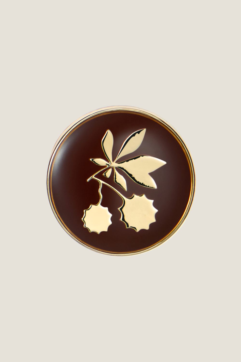 Пин из коллекции TEARS of Aparté. Изделие с гравировкой золотого каштана с эпоксидным покрытием. Застежка обеспечивает надежное и удобное крепление.