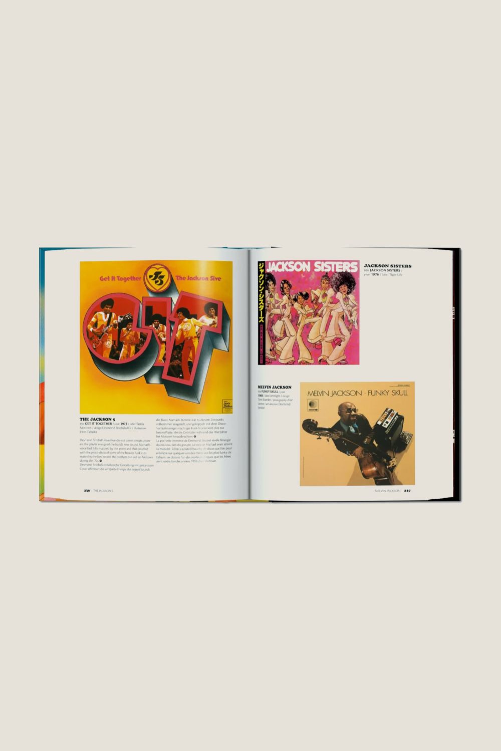 После успеха Jazz Covers в этом эпическом томе грува собрано более 500 легендарных каверов из золотой эры черной музыки. Психоделия встречается с Black Power, сексуальное освобождение — с социальным сознанием, а уличный портрет — с фантастическим мультфильмом в этой ослепительной антологии визуализированного фанка и соула. В коллекции собраны как классические, так и редкие обложки, и каждое произведение искусства способно захватить не только интерес покупателя, но и целое музыкальное настроение. Просмотрите и откройте для себя блестящие, дерзкие, необычные и просто прекрасные дизайны, которые поклонники спешили заполучить в свои руки, когда Марвин Гэй, Джеймс Браун, Кертис Мэйфилд, Майкл Джексон и Принс изменили мир своим уникальным и незабываемым звучанием. В книге Funk & Soul Covers представлены интервью с ключевыми фигурами индустрии, а также культурный контекст и анализ дизайна многих из выбранных обложек пластинок.