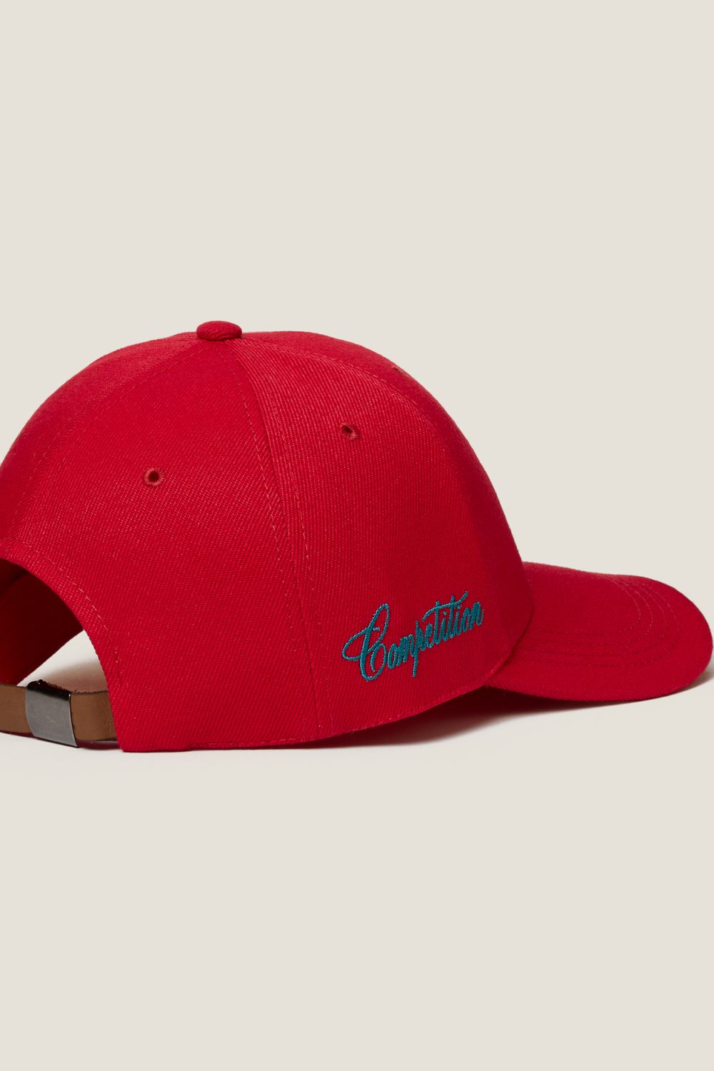 Кепка из 100% хлопка красного цвета. Регулируемый ремешок из натуральной кожи. Объемная вышивка TEARS OF COMPETITION. Окружность головы : 58 см.