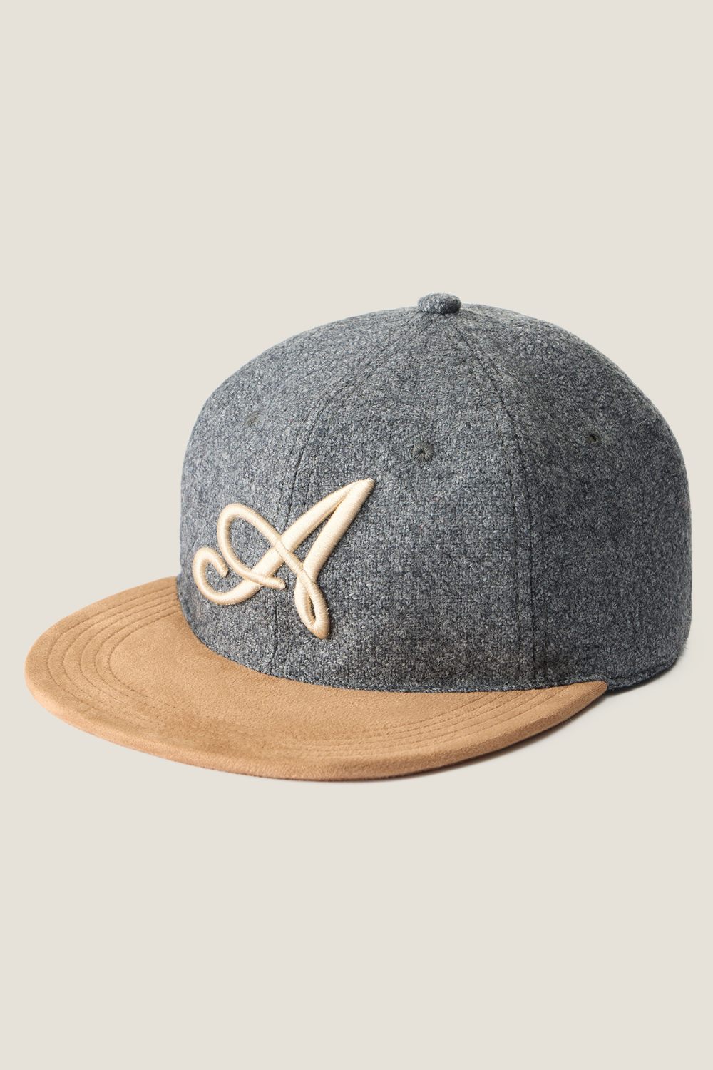 Серая бейсболка с нашивной буквой А спереди. 5-панельная модель. Пластиковый ремешок, регулирующий посадку. Окружность головы: 58 см.