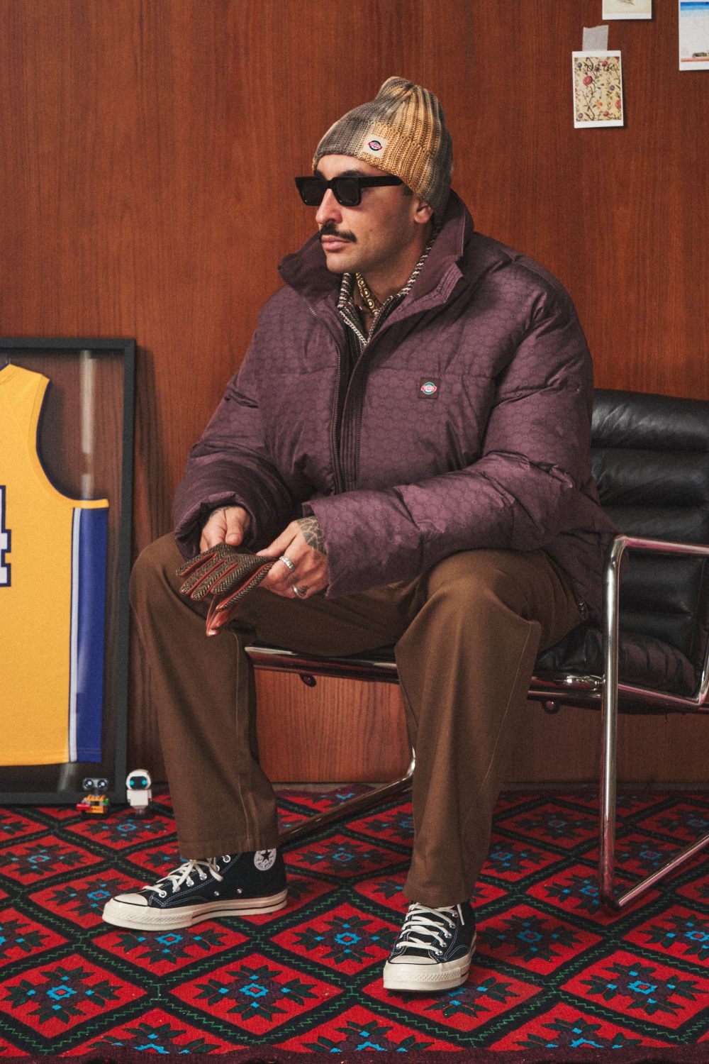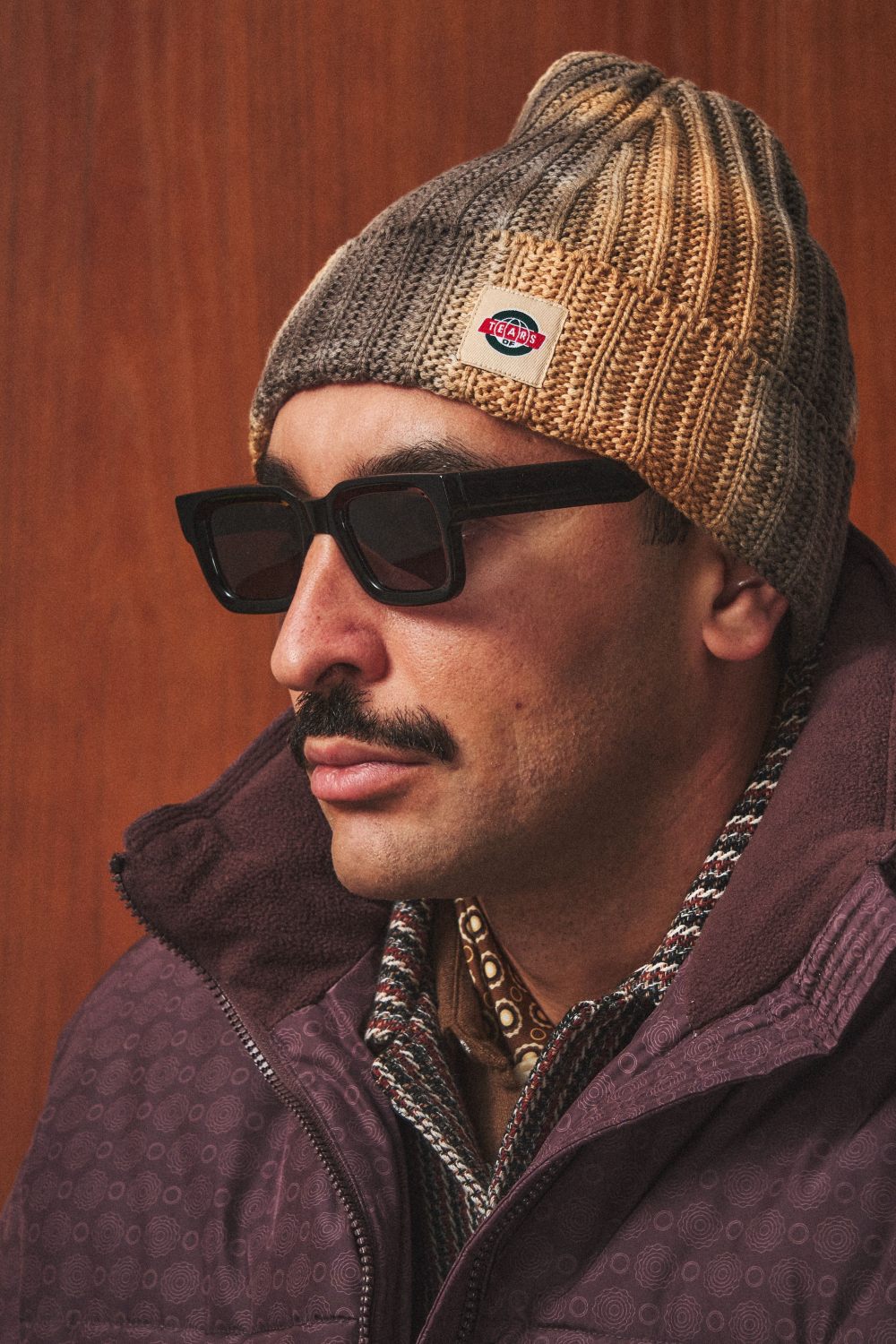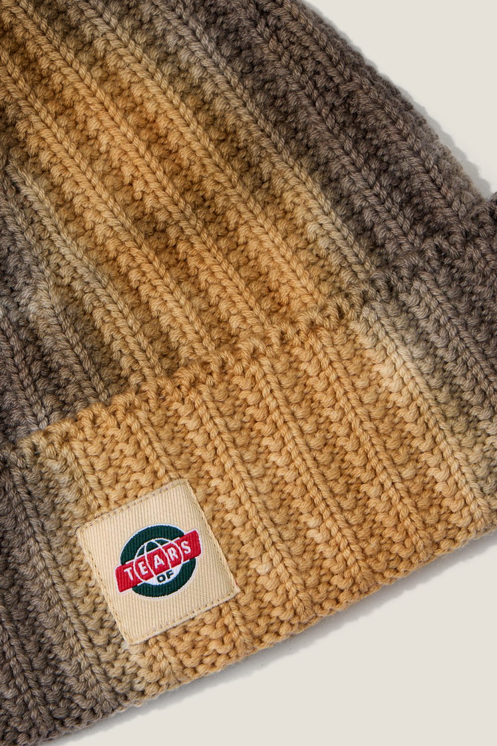 Вязаная шапка из смесовой шерсти с добавлением хлопка, выкрашенная техникой garment dye. Нашивной жаккардовый лейбл на отвороте.