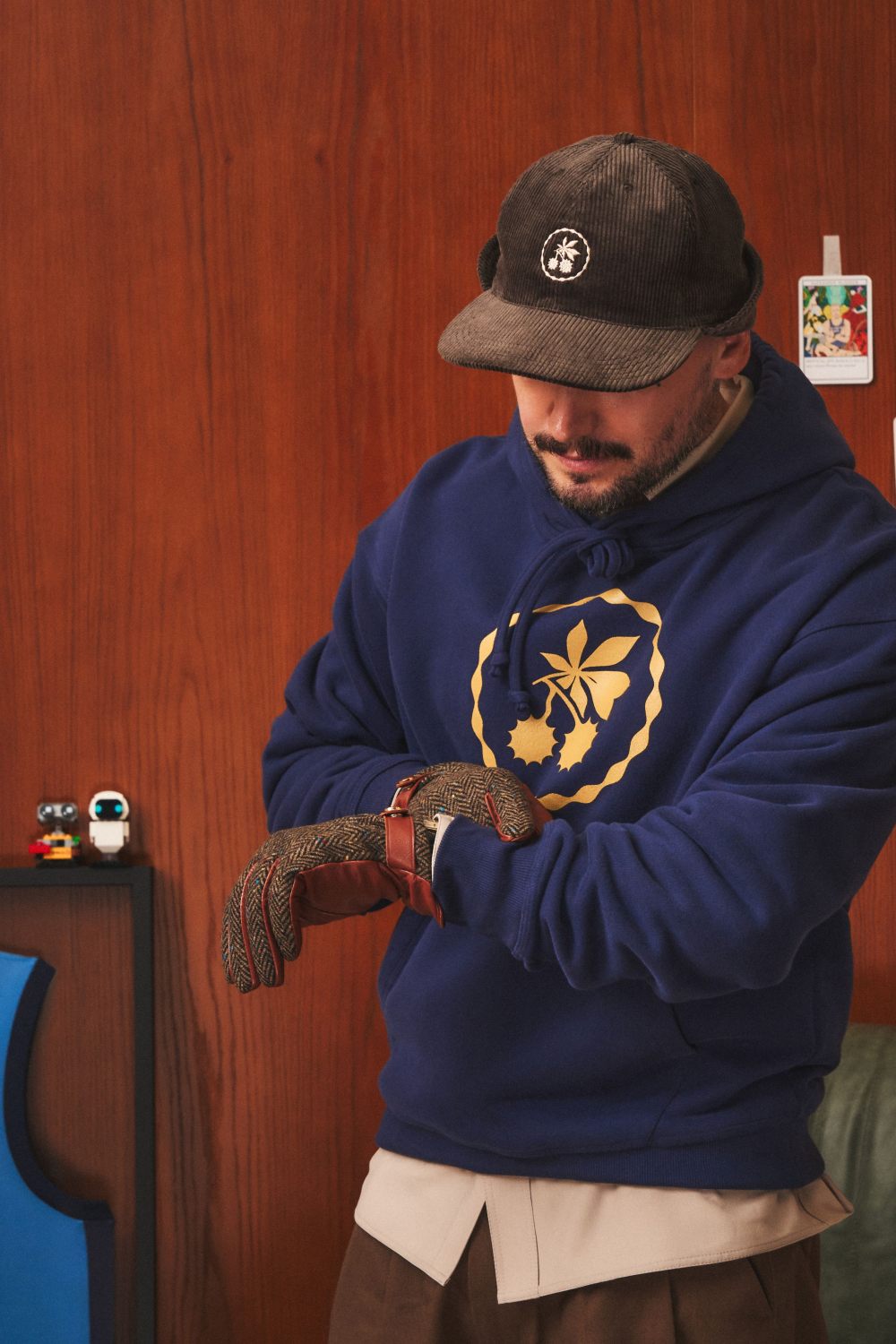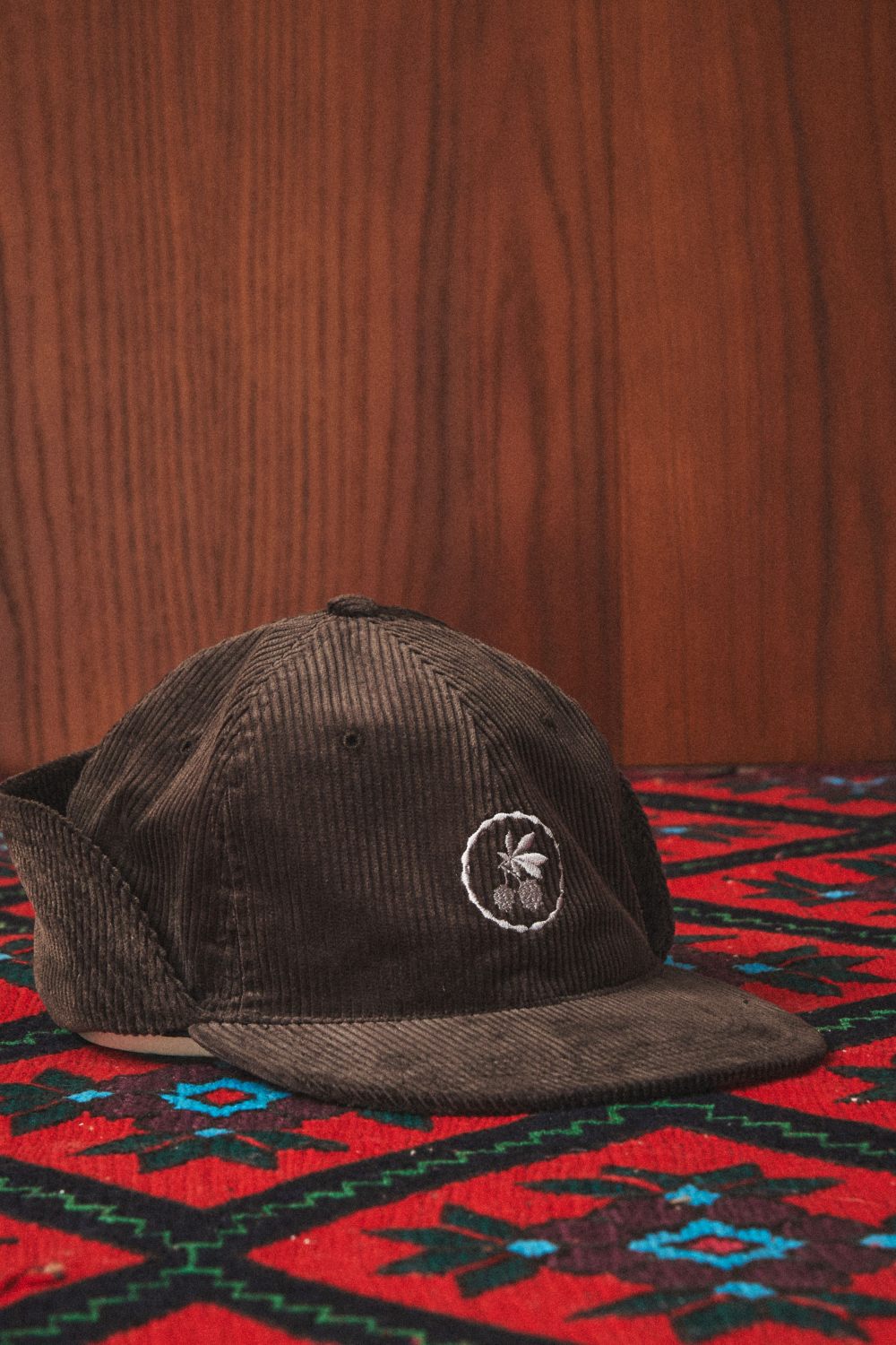 Вельветовая кепка из коллекции TEARS of Aparté. Отворот на затылочной части изделия, защищающий от ветра. Посадка изделия регулируется кулиской. Объемная вышивка каштана. Цвет: коричневый.