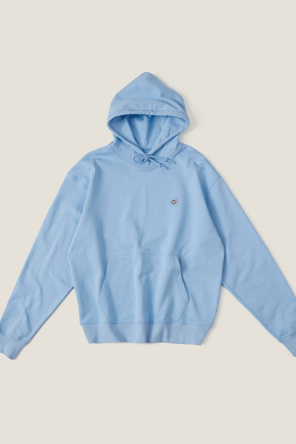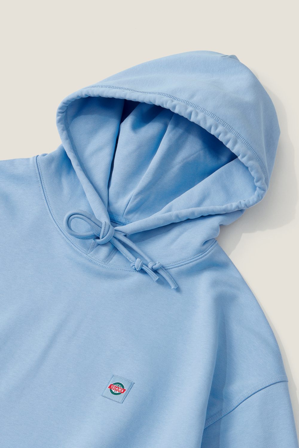 Худи свободного кроя из 100% хлопка с логотипом на спине, выполненным методом шелкографии. Накладной карман-кенгуру спереди, фирменный нашивной лейбл в области груди. Капюшон на завязках. Цвет: голубой.