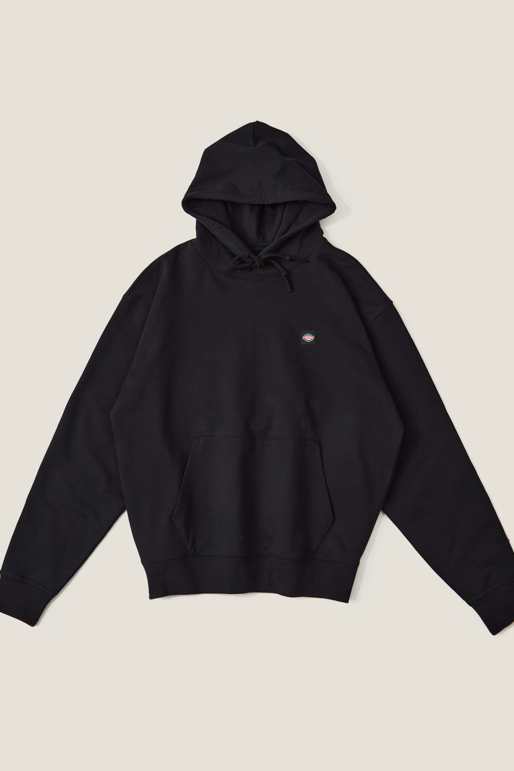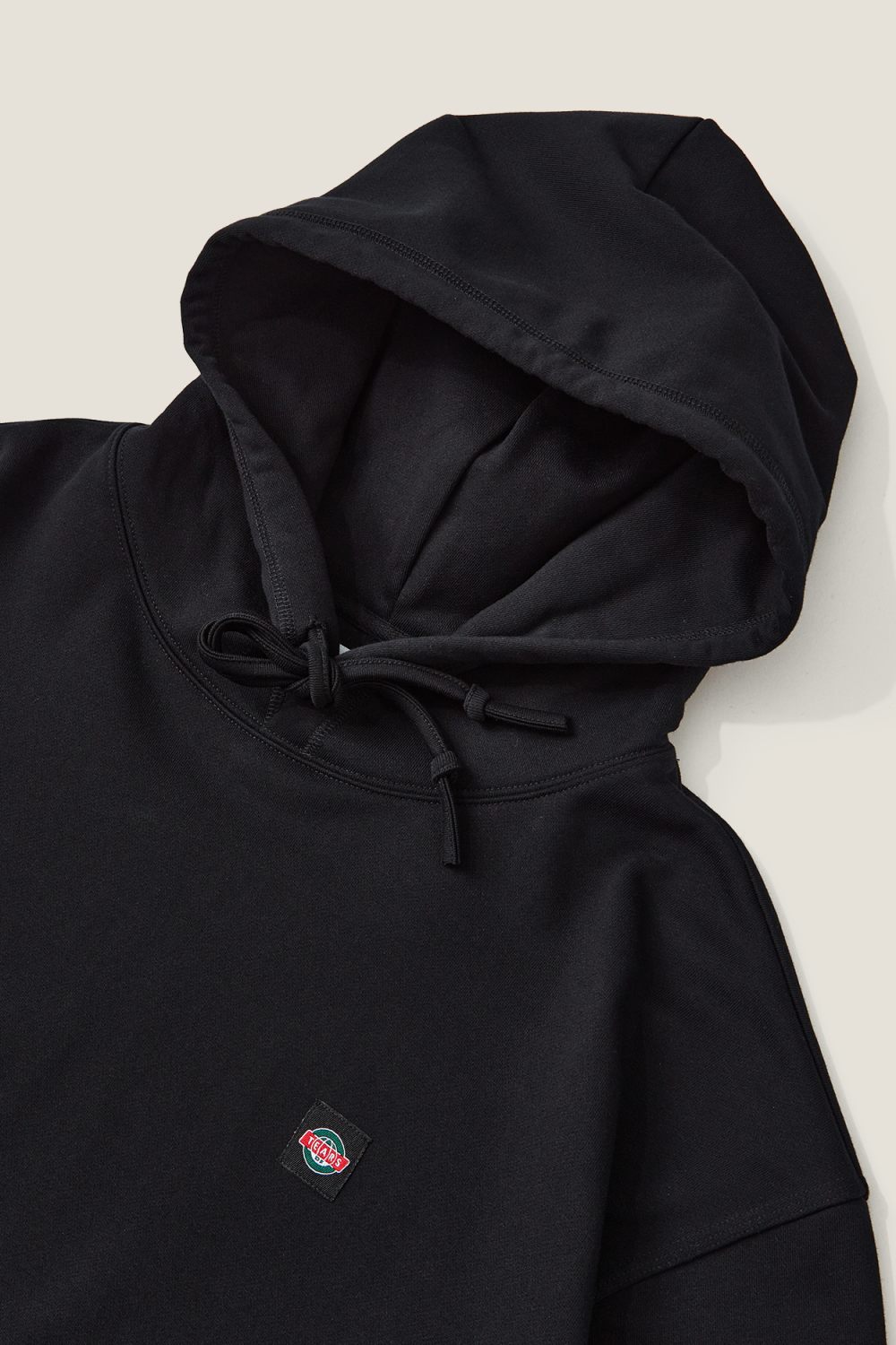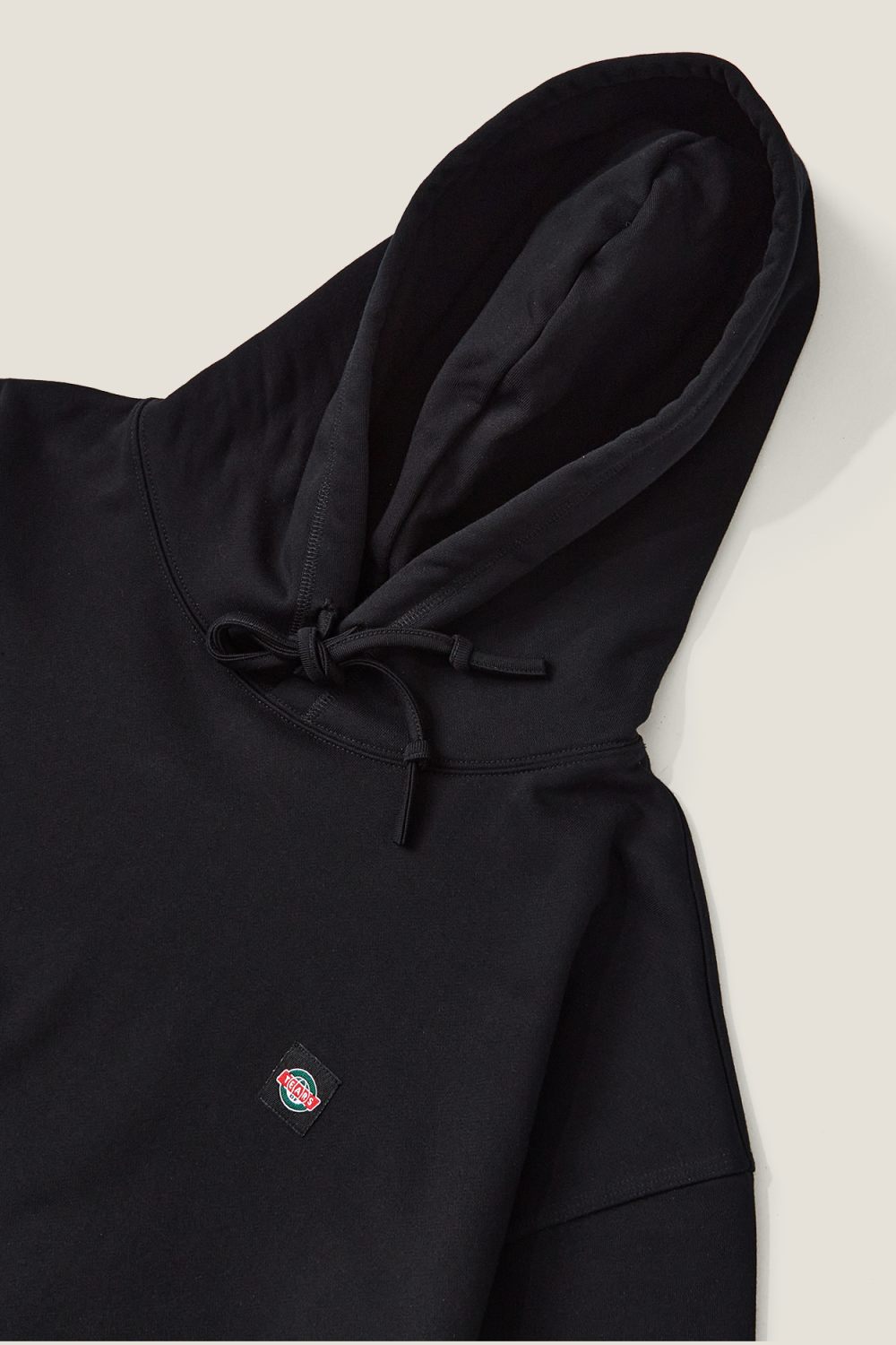 Худи свободного кроя из 100% хлопка с логотипом на спине, выполненным методом шелкографии. Накладной карман-кенгуру спереди, фирменный нашивной лейбл в области груди. Капюшон на завязках. Цвет: черный.