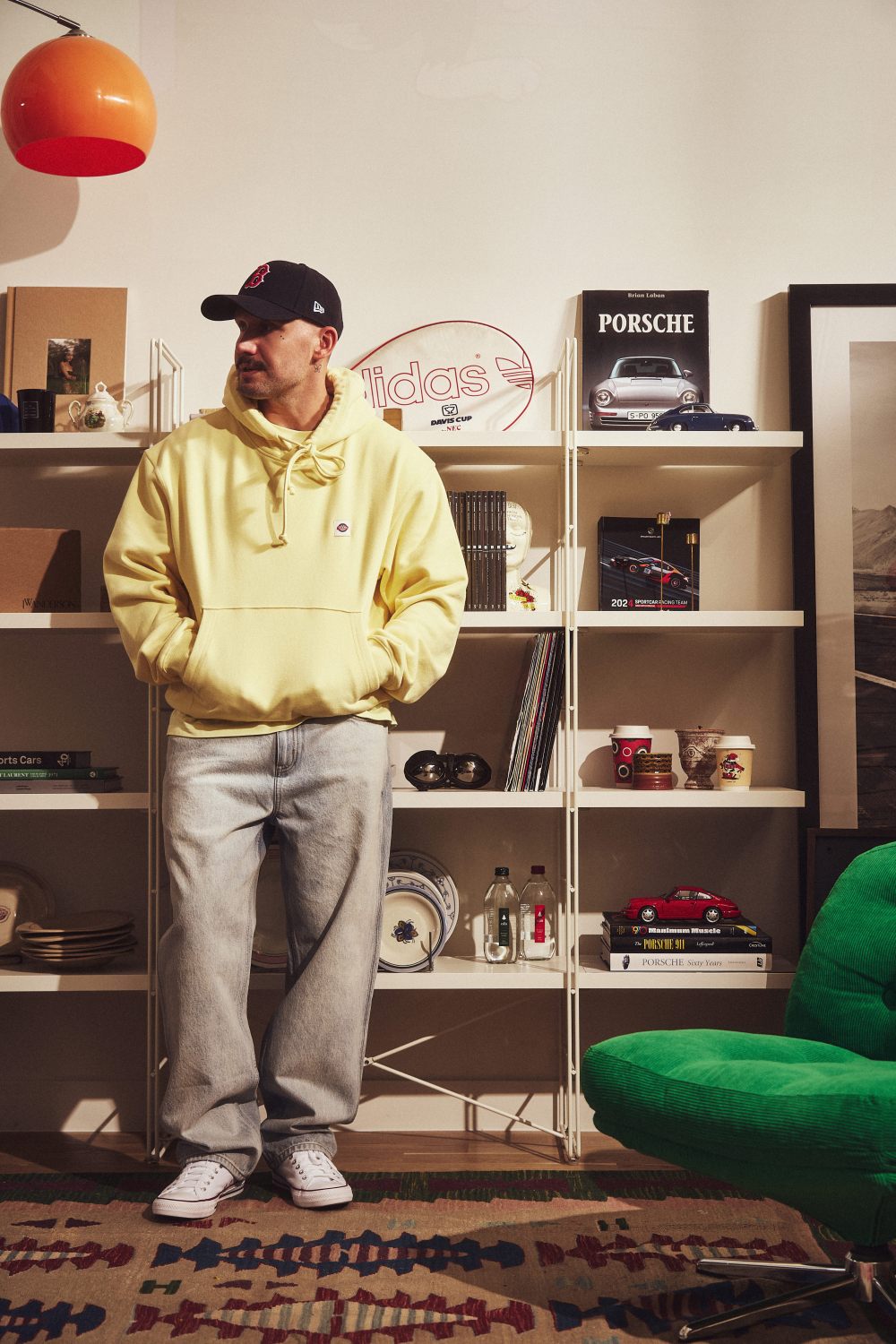 Худи свободного кроя из 100% хлопка. Накладной карман-кенгуру спереди, фирменный нашивной лейбл в области груди. Капюшон на завязках. Цвет: желтый.