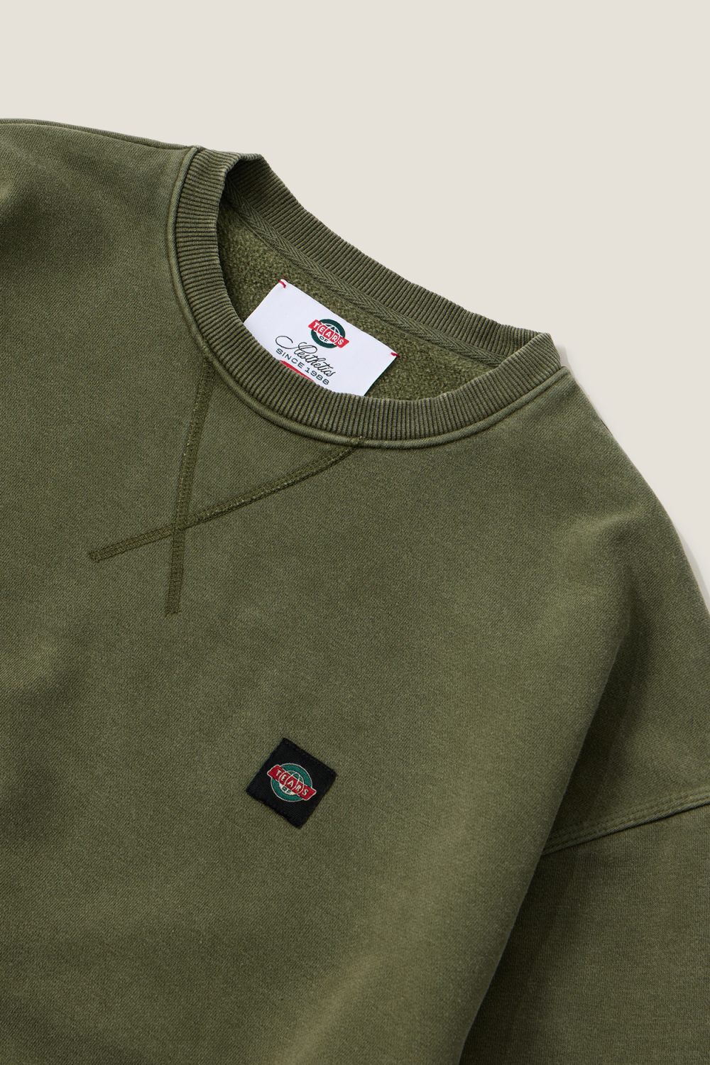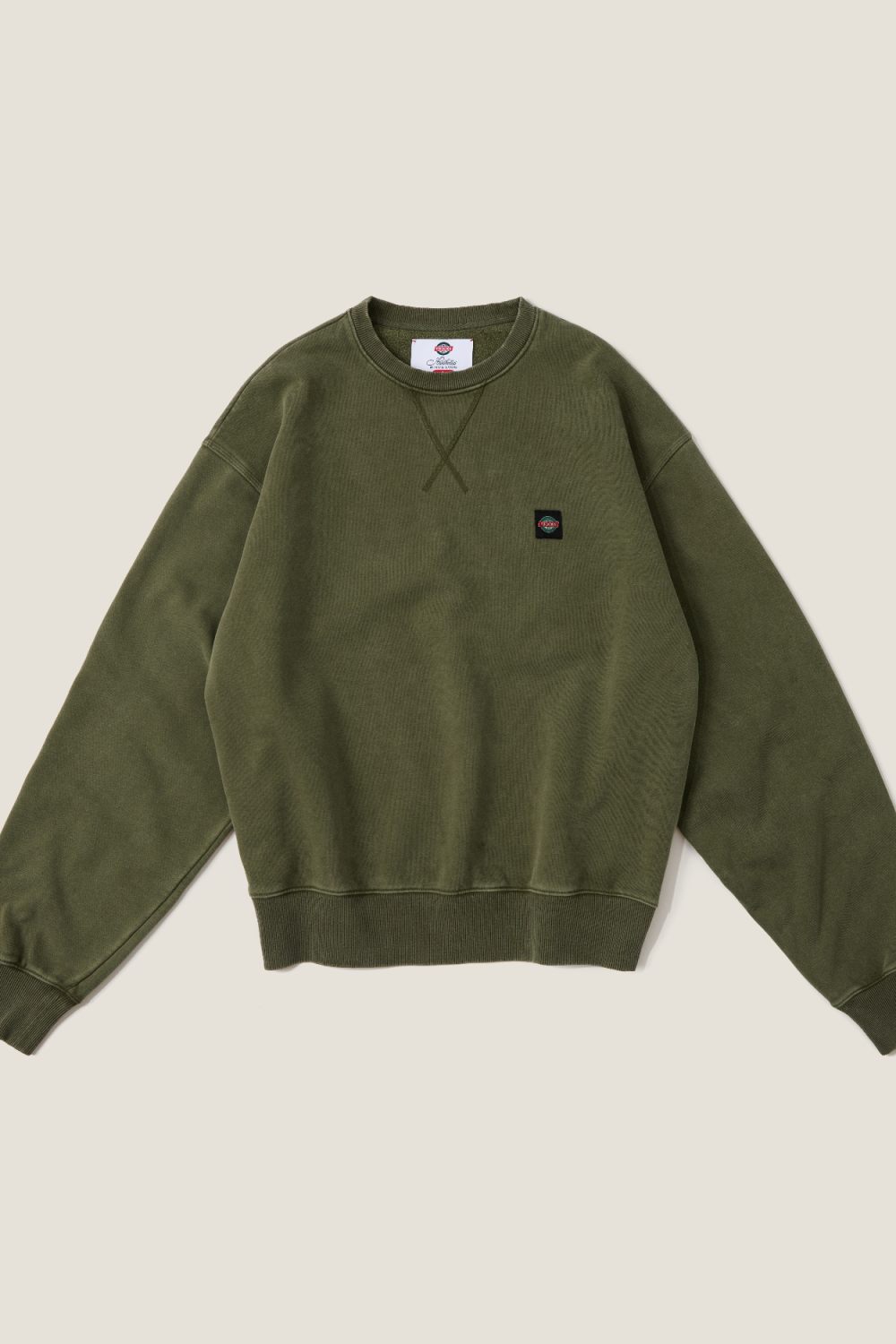 Свитшот с длинным рукавом из 100% хлопка. О-образный вырез. Фирменный нашивной лейбл черного цвета на груди. Цвет: хаки. Полная адаптация окрашенного изделия происходит по мере использования и последующих циклов стирки/полоскания. Не рекомендуется носить изделия линейки WASHED со светлыми вещами и аксессуарами.