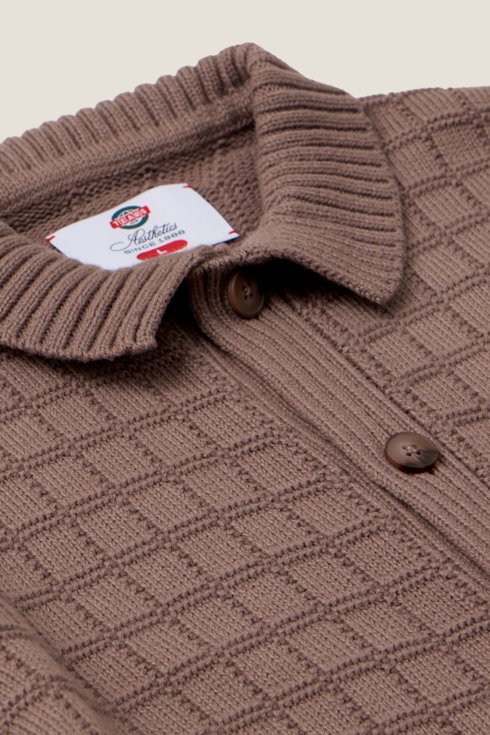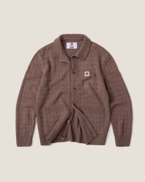 Вязаный кардиган из смесовой шерсти, отложной воротник, накладные карманы на передней части изделия, пуговицы с контрастным эмбоссированием. Ажурная вязка. Цвет: бежевый.