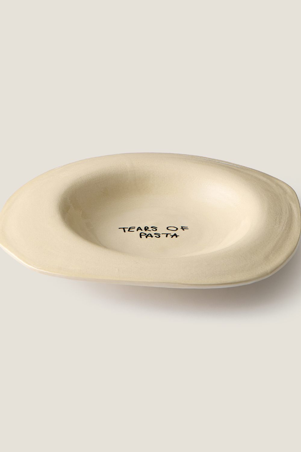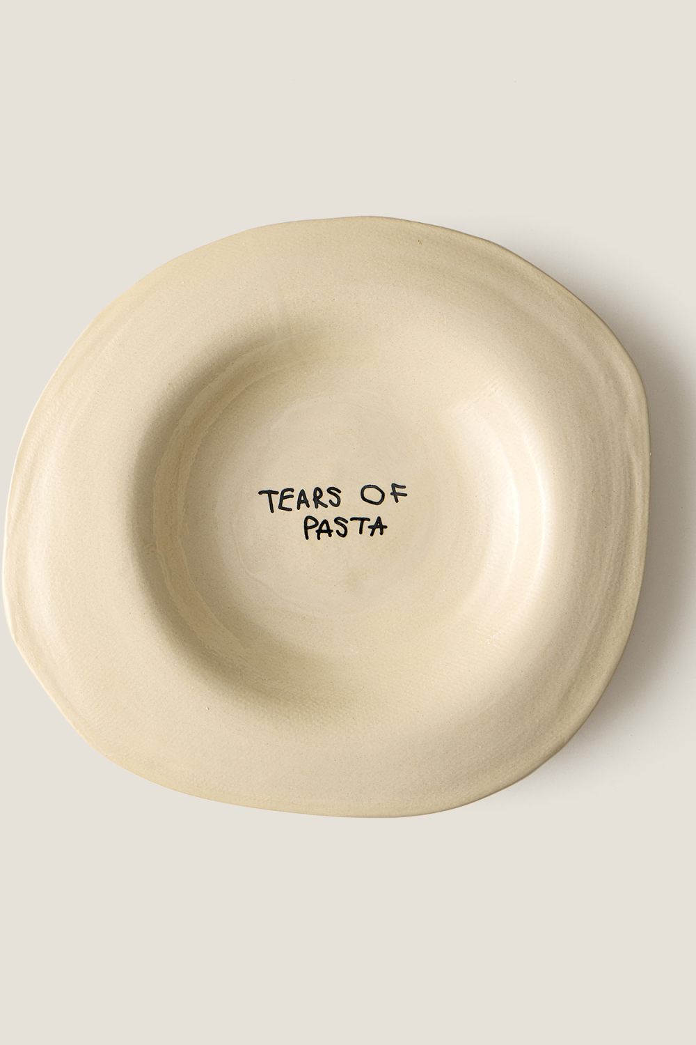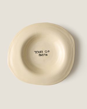 Керамическая тарелка для пасты TEARS OF цвета слоновой кости. Изделия изготавливаются вручную, поэтому каждая тарелка уникальна и имеет свою изогнутую форму. В центре тарелки расположен логотип - TEARS OF PASTA. Рекомендуется мыть вручную.
