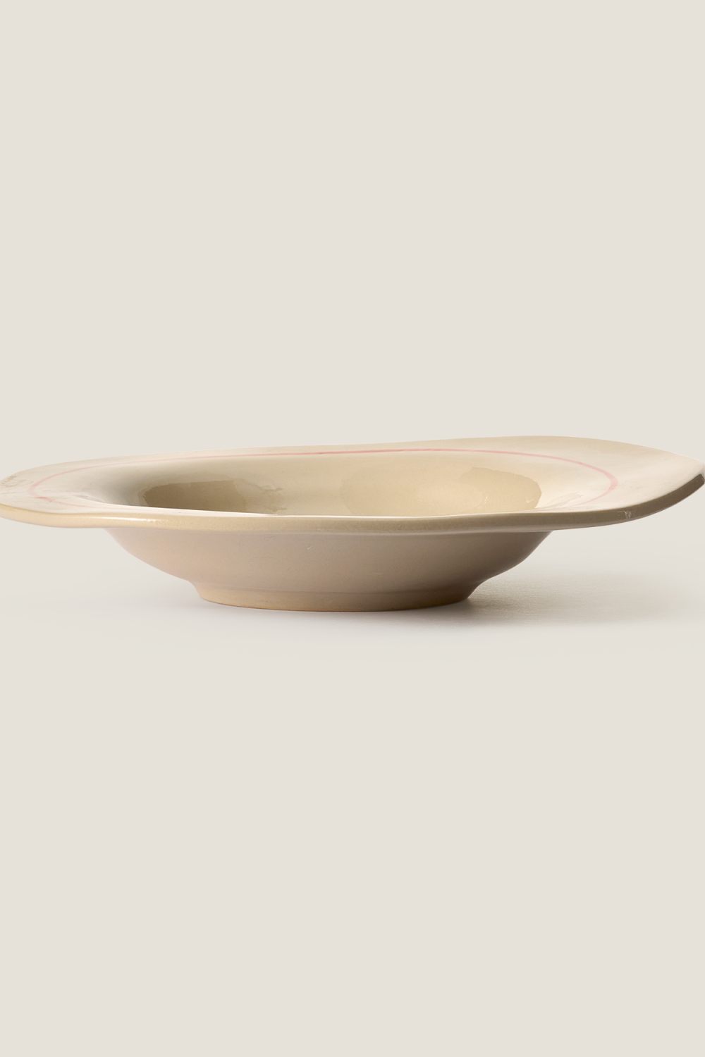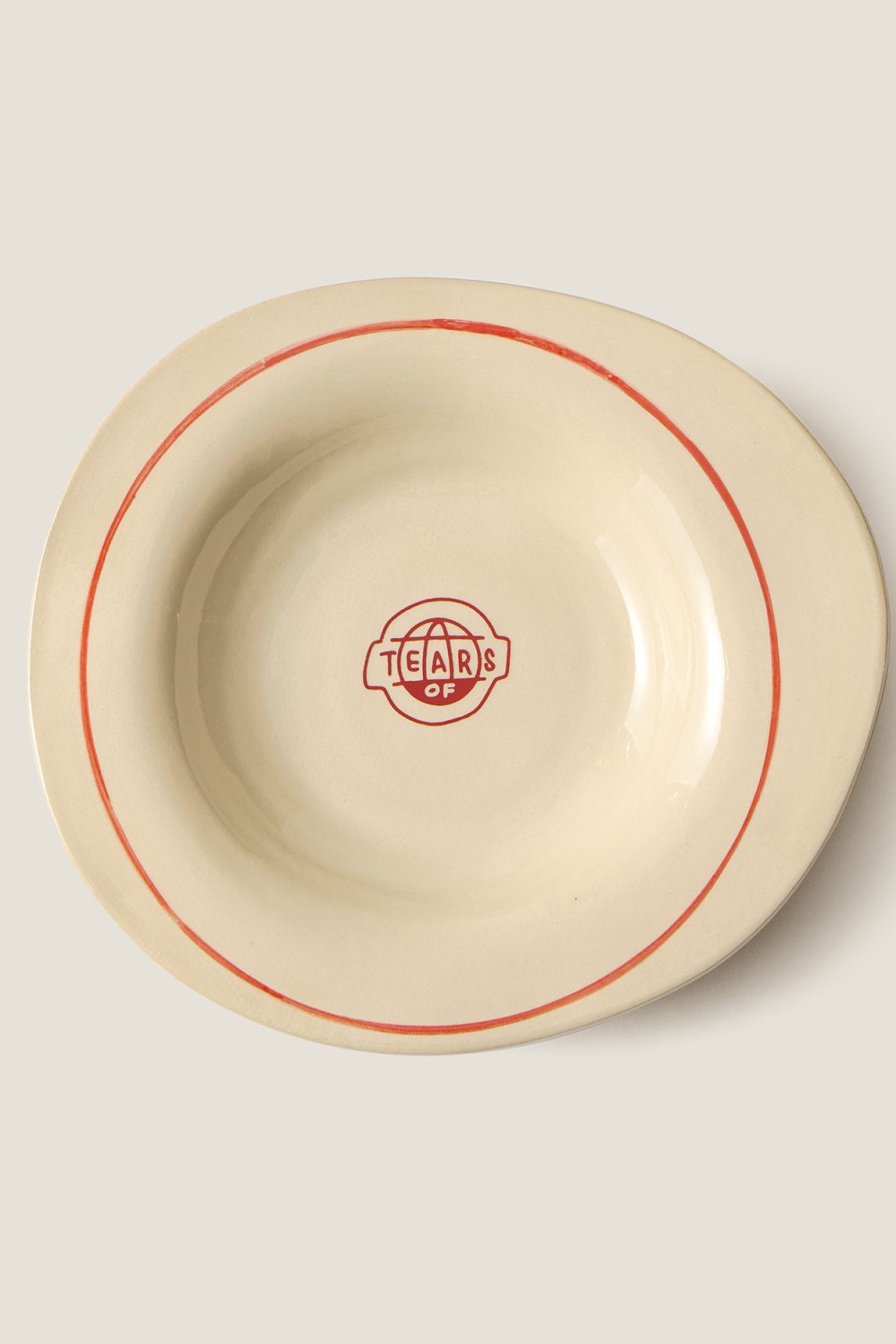 Керамическая тарелка для пасты TEARS OF цвета слоновой кости. Изделия изготавливаются вручную, поэтому каждая тарелка уникальна и имеет свою изогнутую форму. В центре тарелки расположен логотип - TEARS OF PASTA. Рекомендуется мыть вручную.