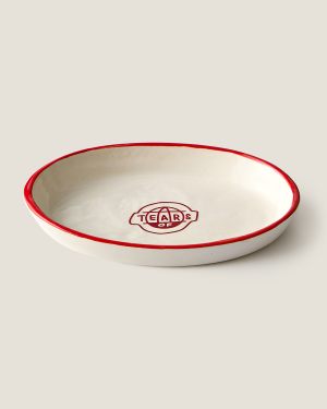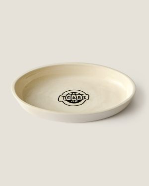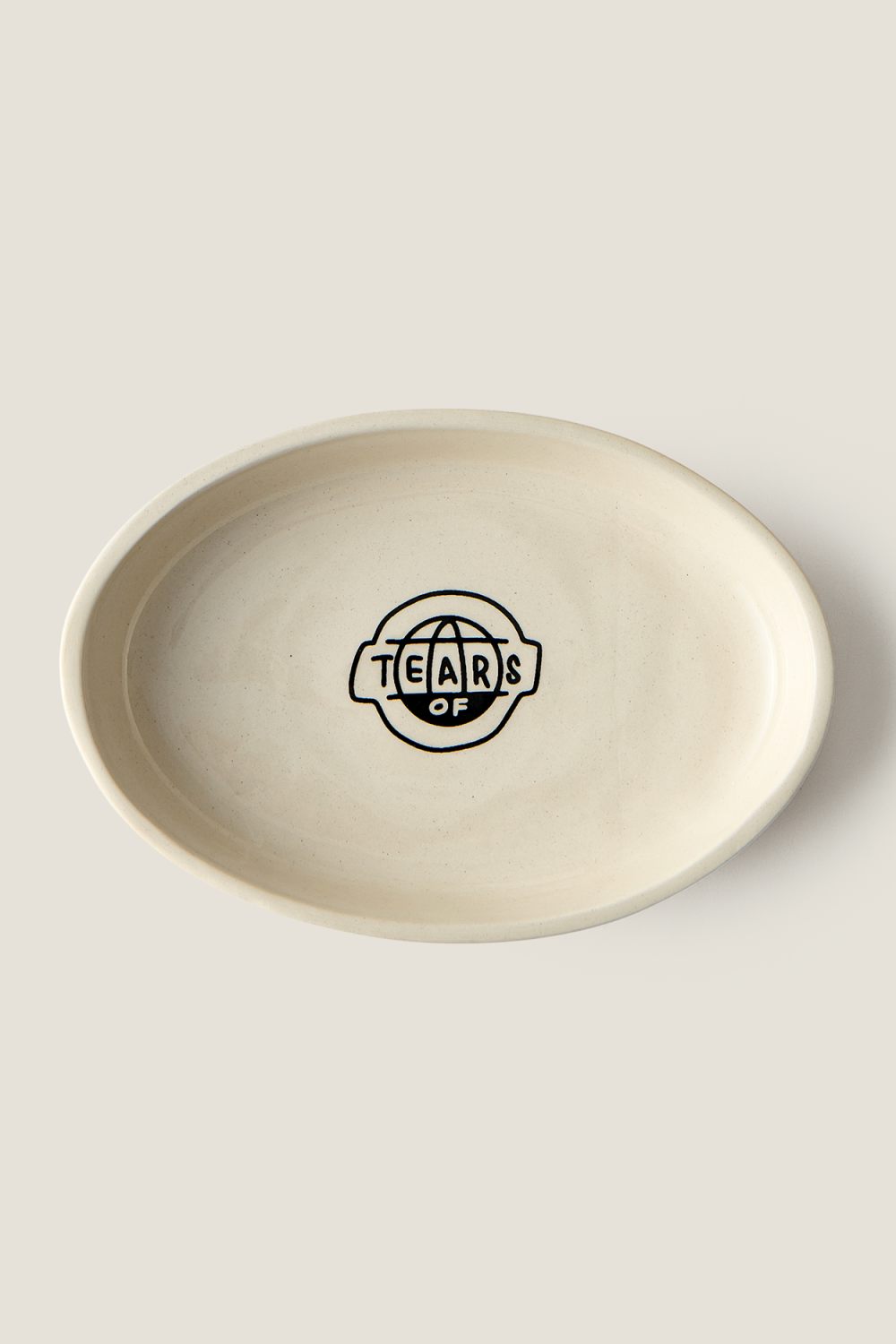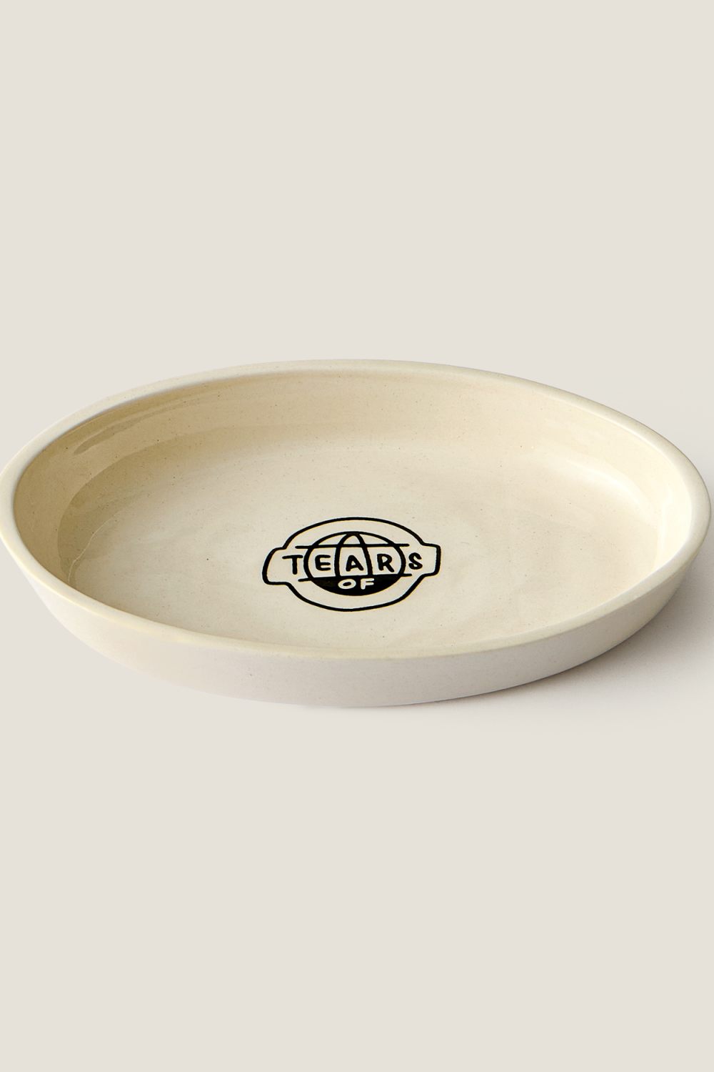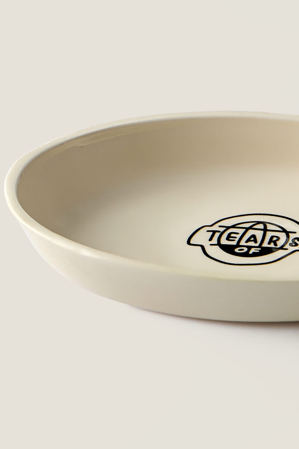 Керамическое блюдце TEARS OF цвета слоновой кости. Изделия изготавливаются вручную. В центре тарелки расположен логотип - TEARS OF черного цвета. Рекомендуется мыть вручную.