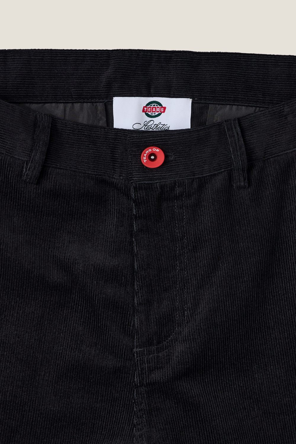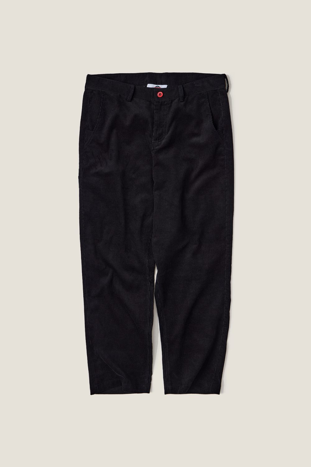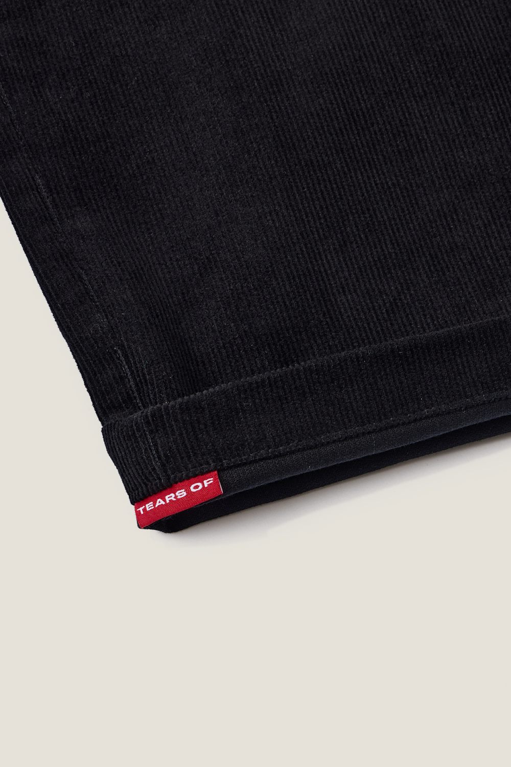 Вельветовые брюки прямого кроя из 100% хлопка. Карманы: два боковых, два задних прорезных и один на бедре. Застежка на молнию и пуговицу с контрастным эмбоссированием. Жаккардовый флажок с логотипом изнутри на нижнем крае штанины, фирменный лейбл под карманом на бедре. Цвет: черный.