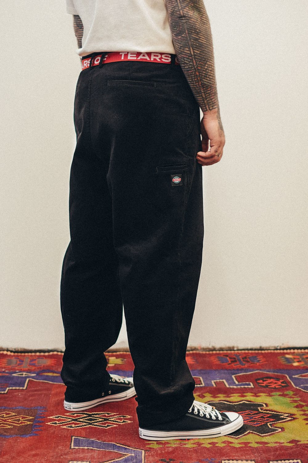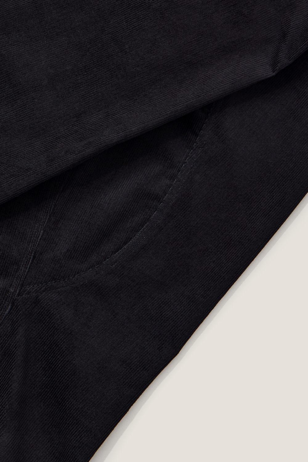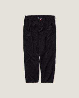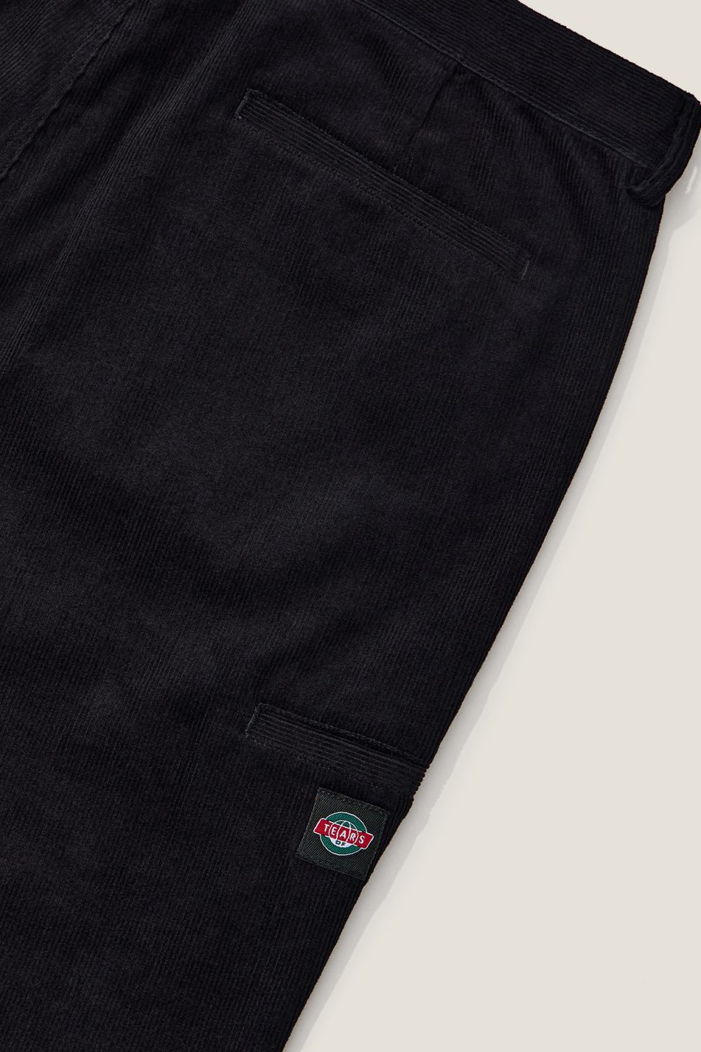 Вельветовые брюки прямого кроя из 100% хлопка. Карманы: два боковых, два задних прорезных и один на бедре. Застежка на молнию и пуговицу с контрастным эмбоссированием. Жаккардовый флажок с логотипом изнутри на нижнем крае штанины, фирменный лейбл под карманом на бедре. Цвет: черный.