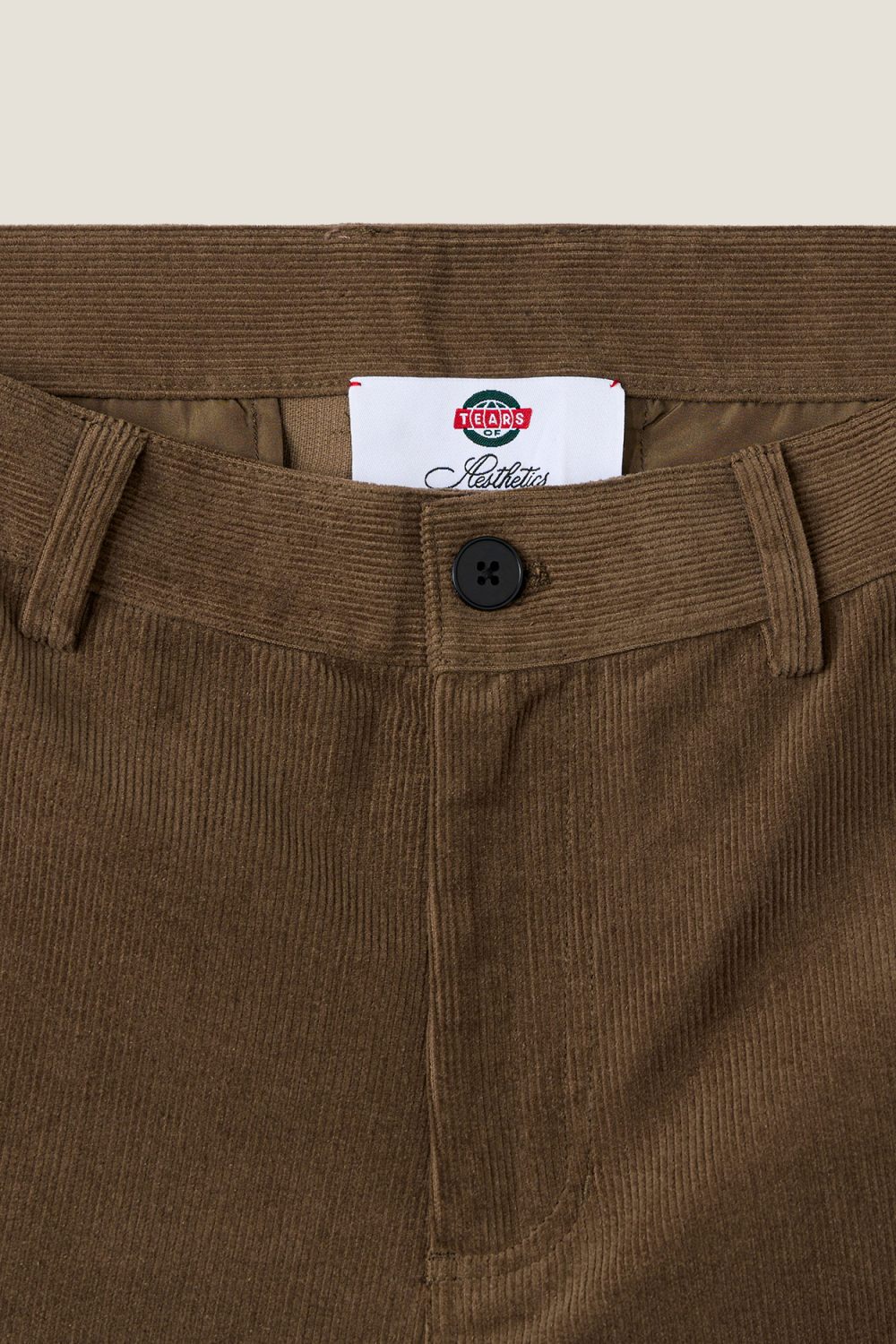 Вельветовые брюки прямого кроя из 100% хлопка из коллекции TEARS of Aparté. Карманы: два боковых, два задних прорезных и один на бедре. Застежка на молнию и пуговицу черного цвета. Жаккардовый флажок с логотипом изнутри на нижнем крае штанины, фирменный лейбл под карманом на бедре. Цвет: коричневый.