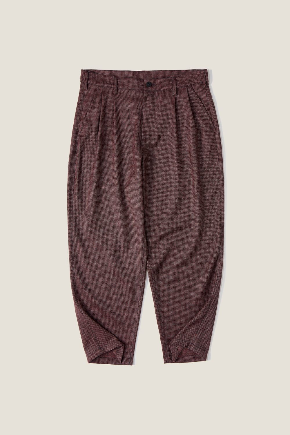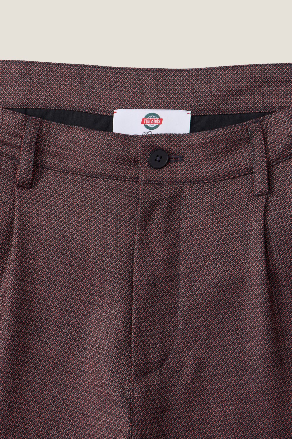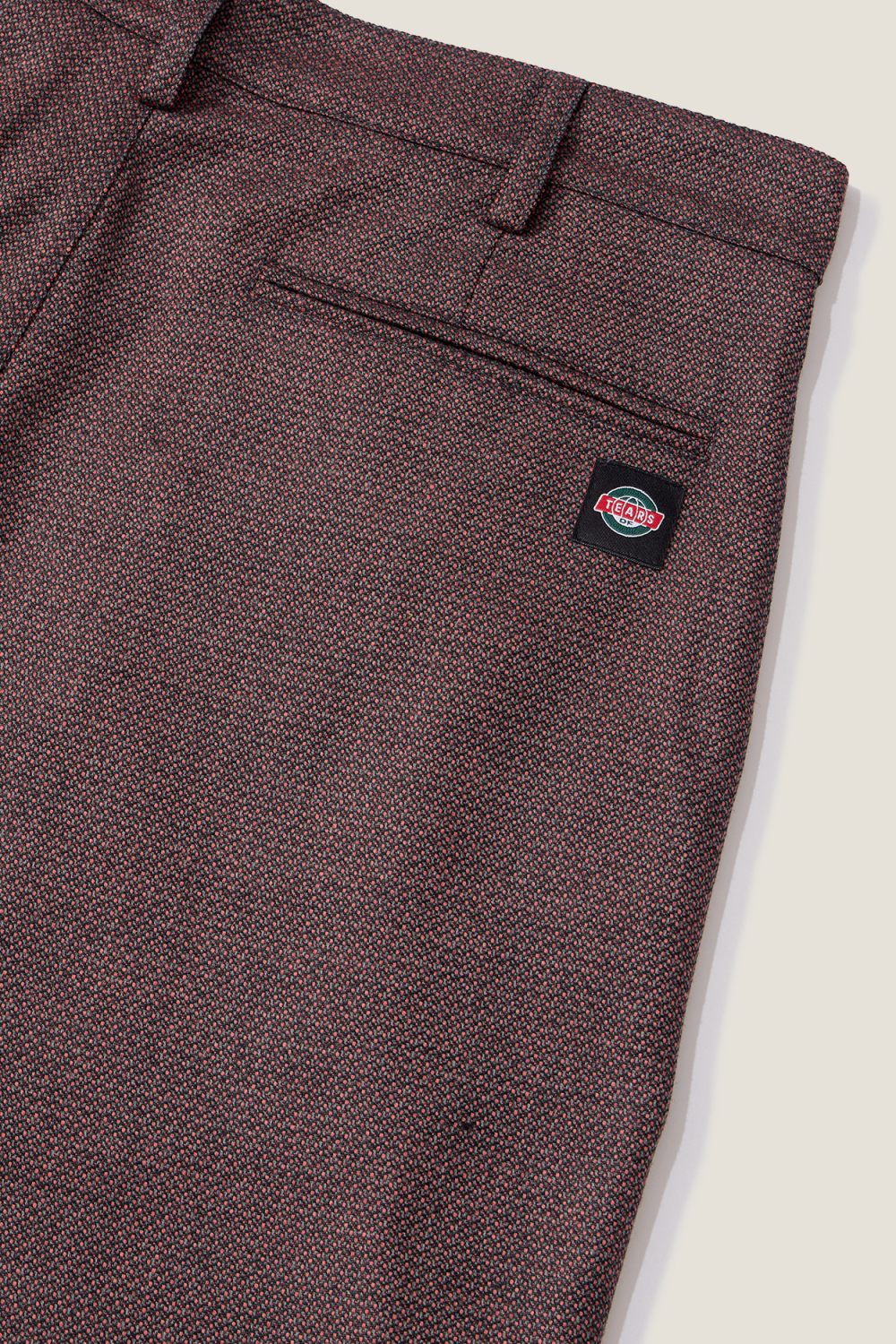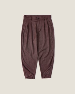 Брюки прямого кроя из смесовой шерсти. Карманы: два боковых, два задних прорезных. Застежка на молнию и брендированную пуговицу. Жаккардовый флажок с логотипом изнутри на нижнем крае штанины. Фирменный нашивной лейбл черного цвета на кармане. Цвет: бордовый.