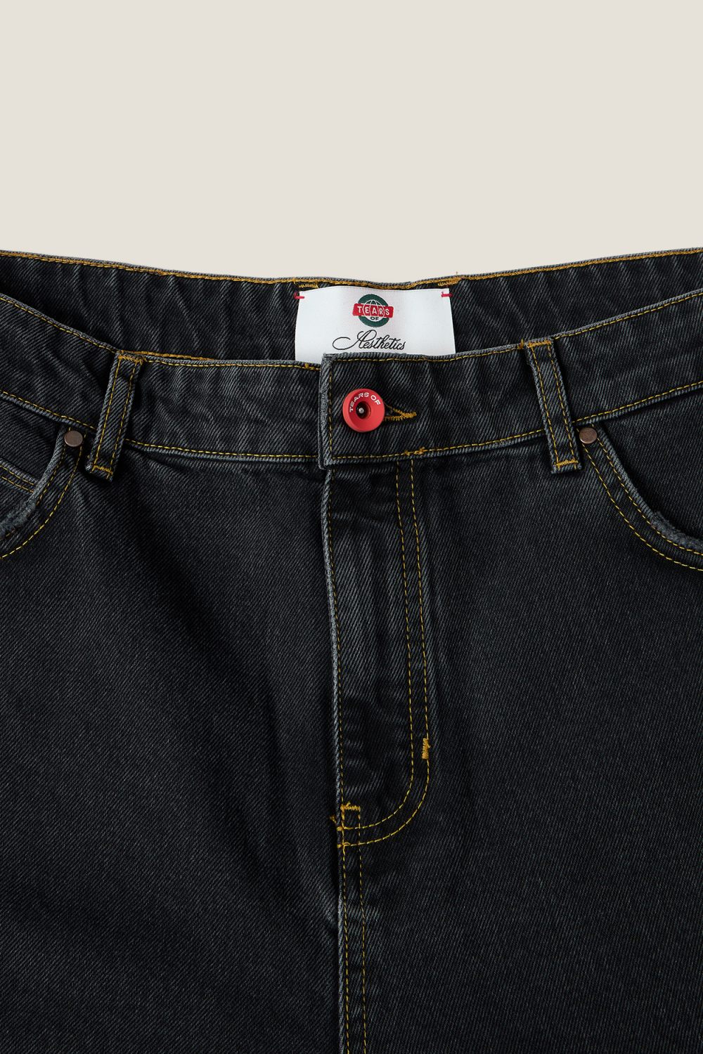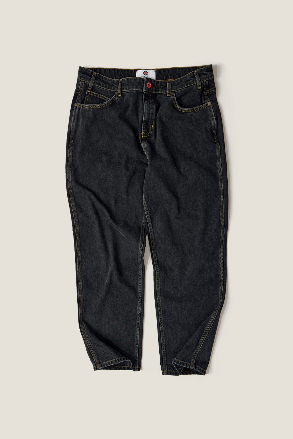 Джинсы из 100% хлопка прямого кроя черного цвета и контрастными нитями. Пять карманов. Застежка на молнии с контрастной пуговицей спереди. Внутренний шнурок для регулировки посадки. Жаккардовый флажок с логотипом изнутри на нижнем крае штанины. Фирменный нашивной лейбл на заднем кармане. Цвет: черный.