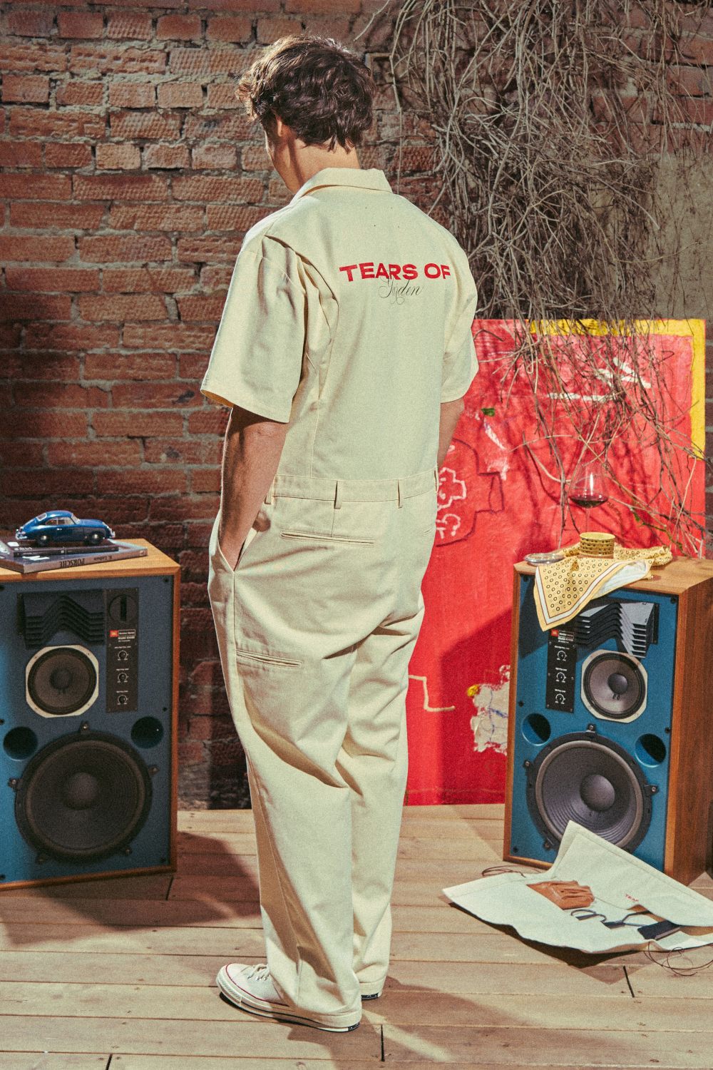 Мужской городской комбинезон из 100% хлопка из коллекции GARDEN, который сочетает в себе баланс между работой и отдыхом. Свободный крой, который не сковывает движения. Воротник стойка. Тип застежки: скрытая молния. Карманы: 2 нагрудных кармана, два боковых, два задних прорезных и один на бедре. Принт на спинке TEARS OF GARDEN.