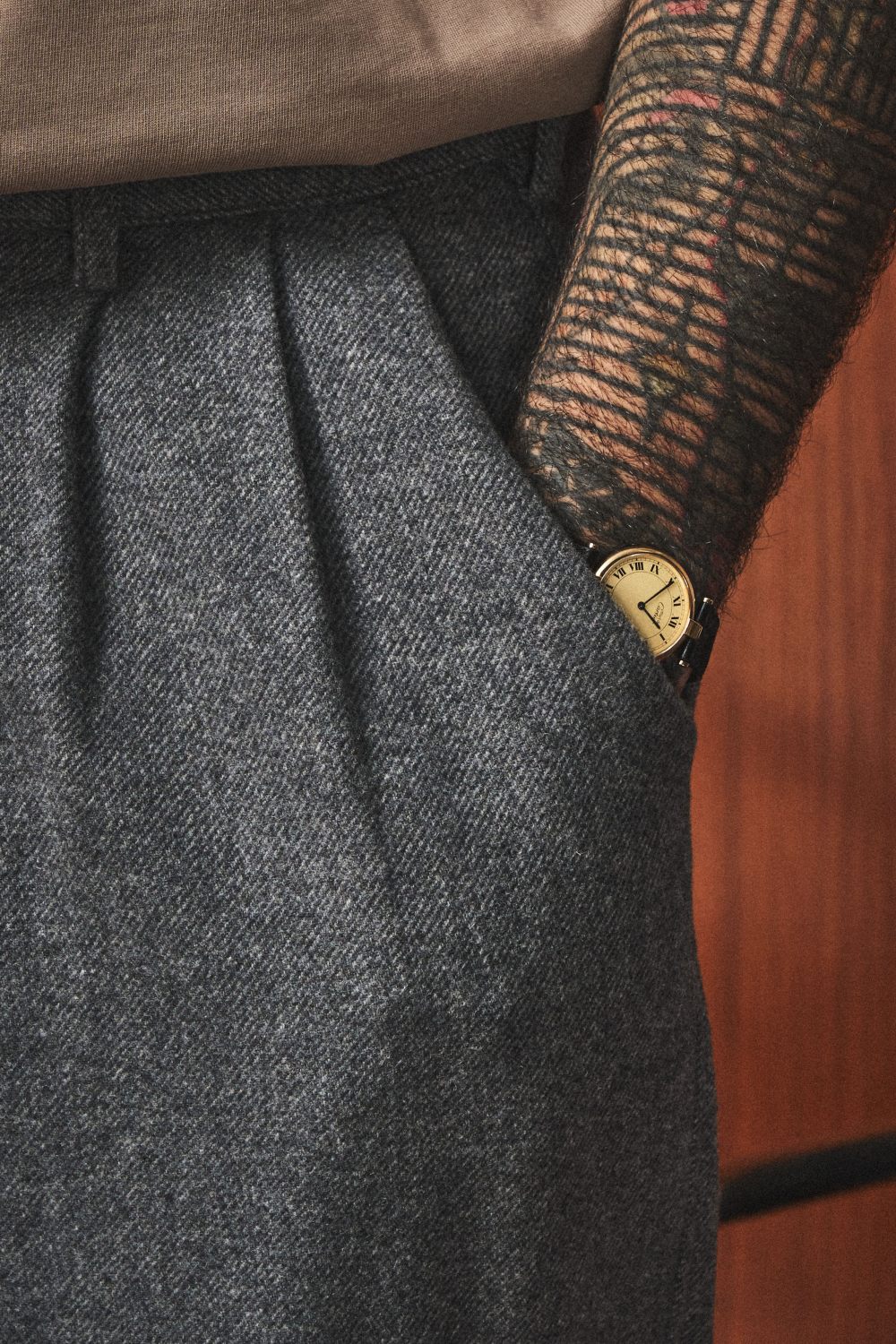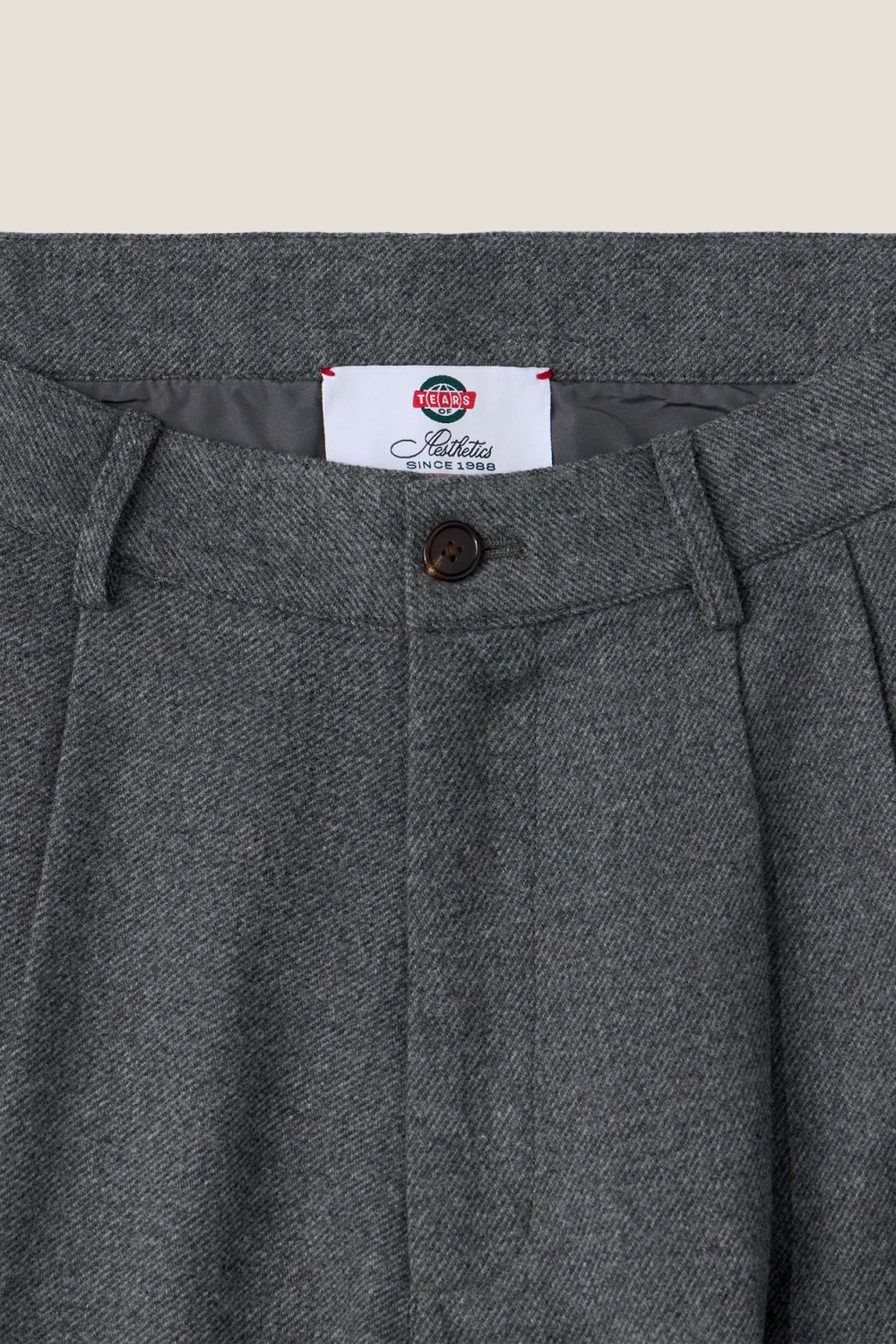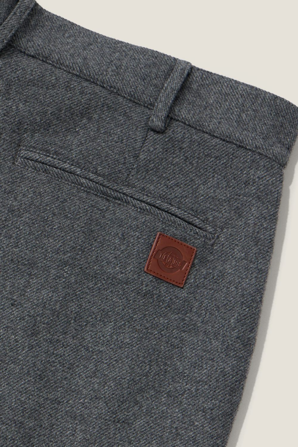 Брюки прямого кроя из смесовой шерсти с подкладкой. Карманы: два боковых, два задних прорезных. Застежка на молнию и брендированную пуговицу. Жаккардовый флажок с логотипом изнутри на нижнем крае штанины. Кожаный нашивной лейбл коричневого цвета на заднем кармане. Цвет: серый.