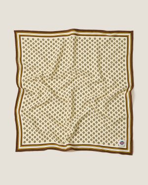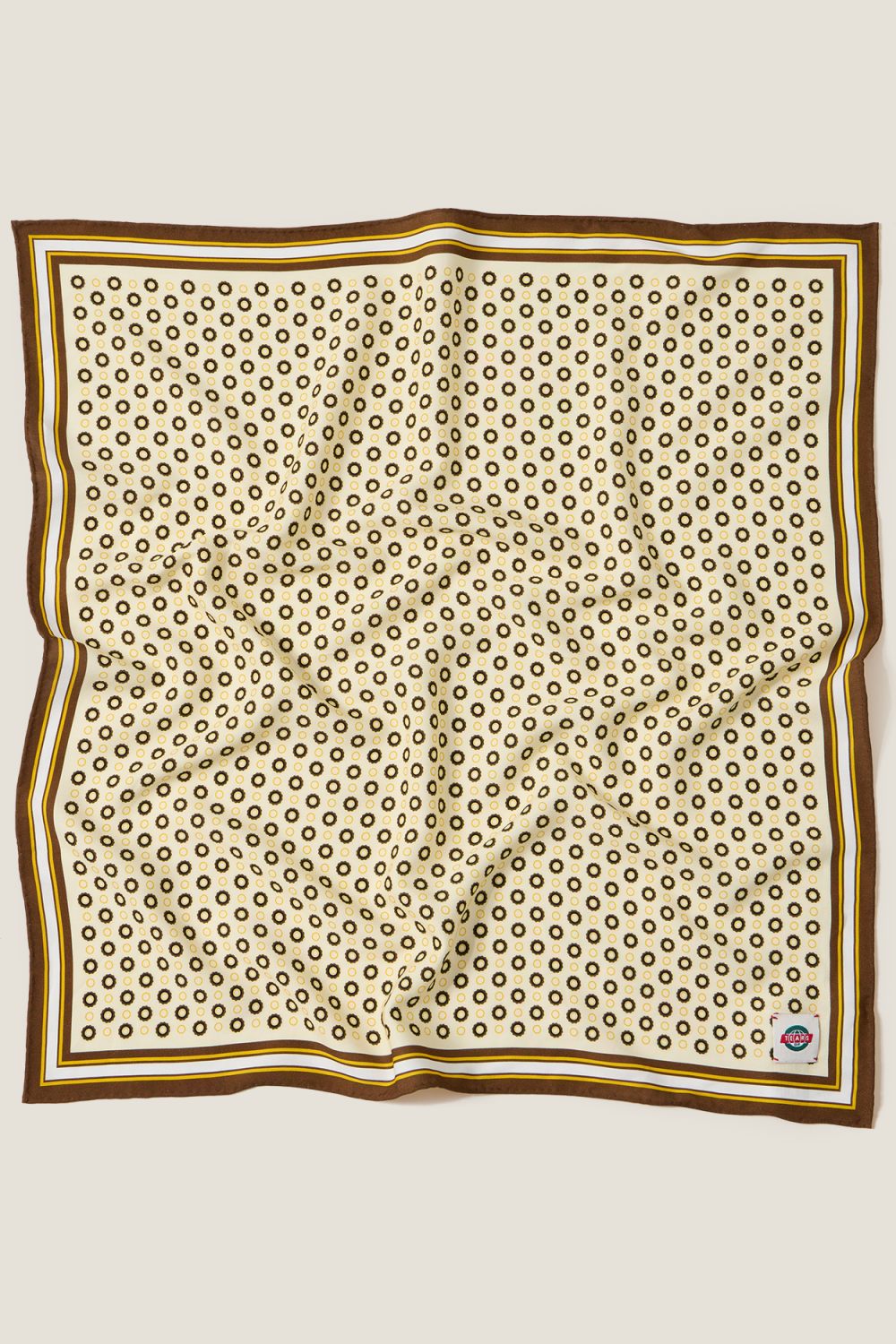 Принтованная бандана из 100% вискозы. Фирменный лейбл белого цвета. Цвет: молочный. Размер: 60 х 60 см.