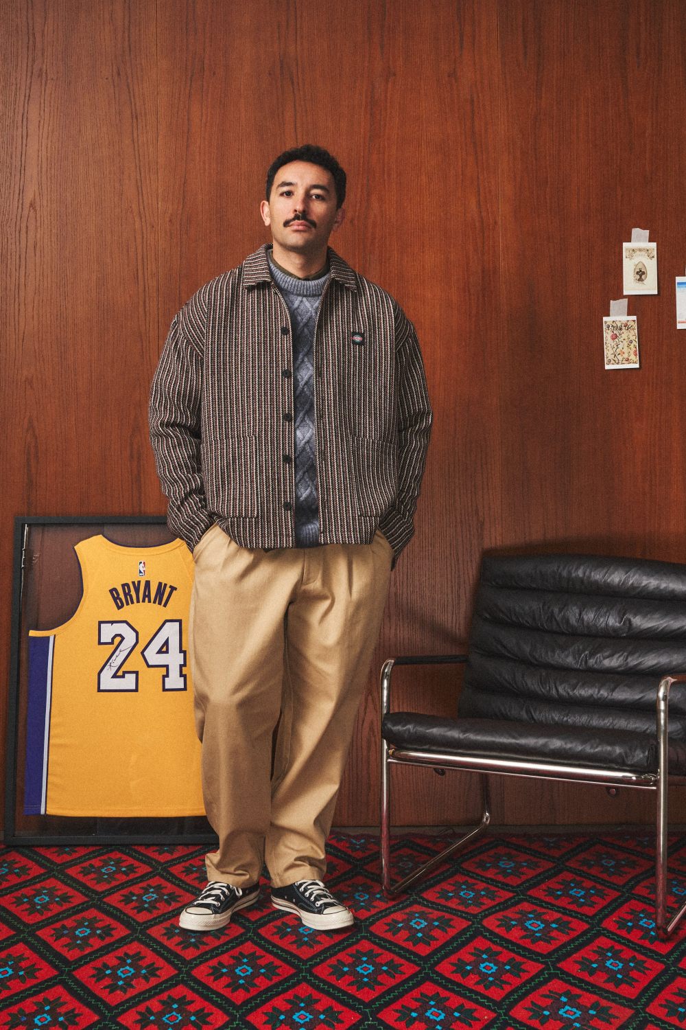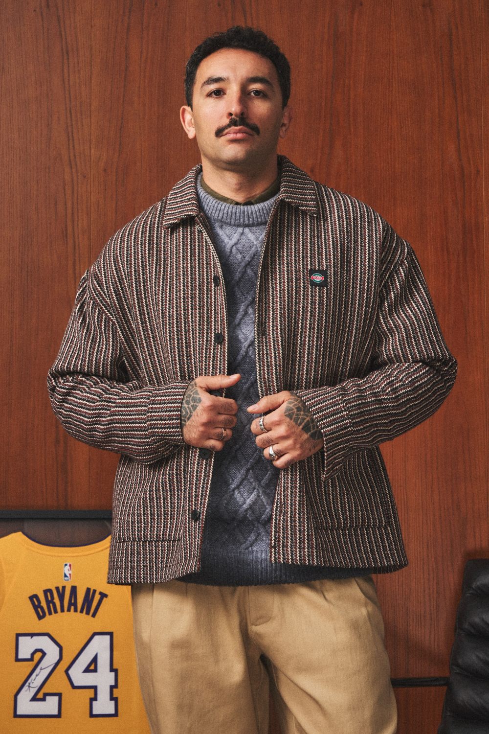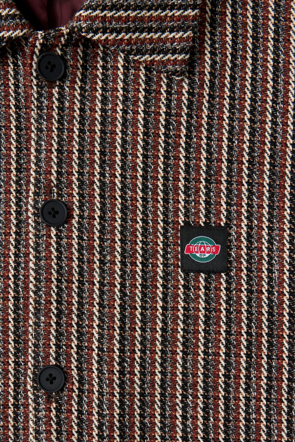 Полосатая куртка свободного кроя из смесовой шерсти. Отложной воротник. Накладные карманы спереди, брендированные черные пуговицы. Подклад коричневого цвета. Фирменный лейбл на груди. Жаккардовый флажок с логотипом на спинке. Цвет: коричневый.