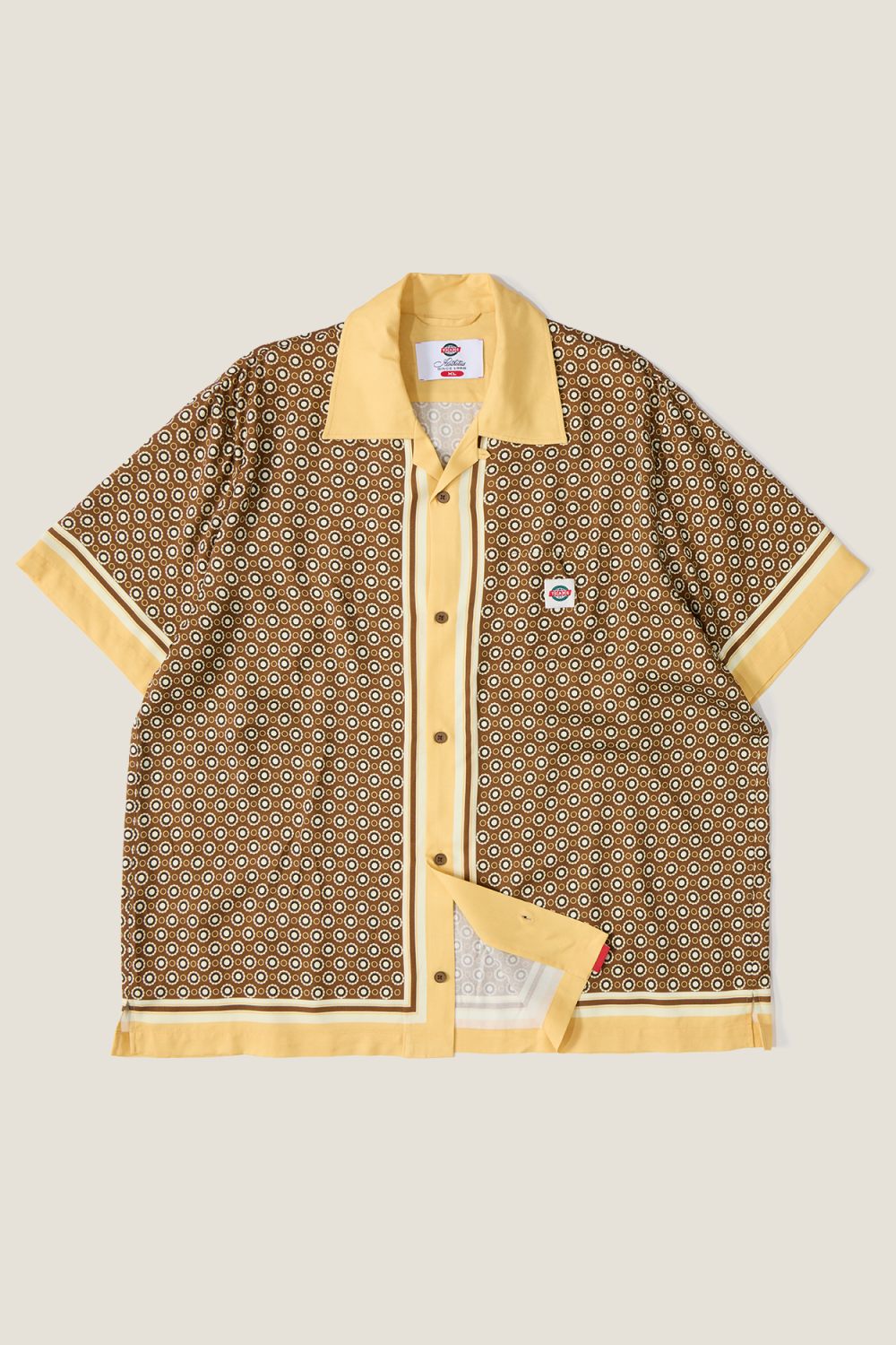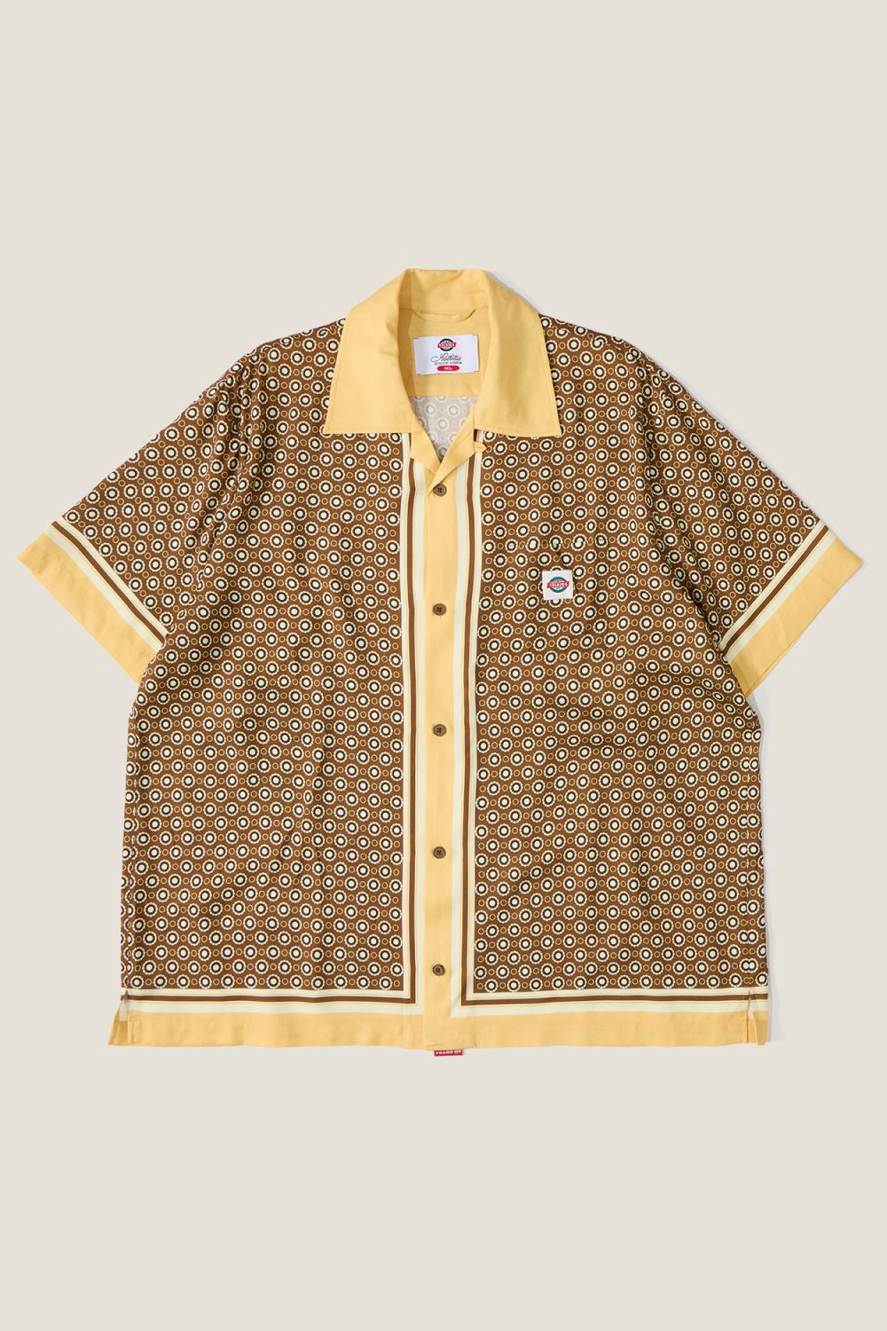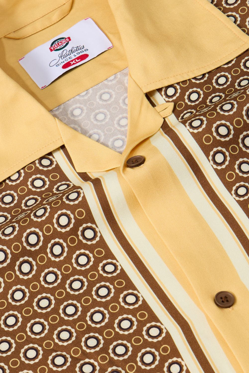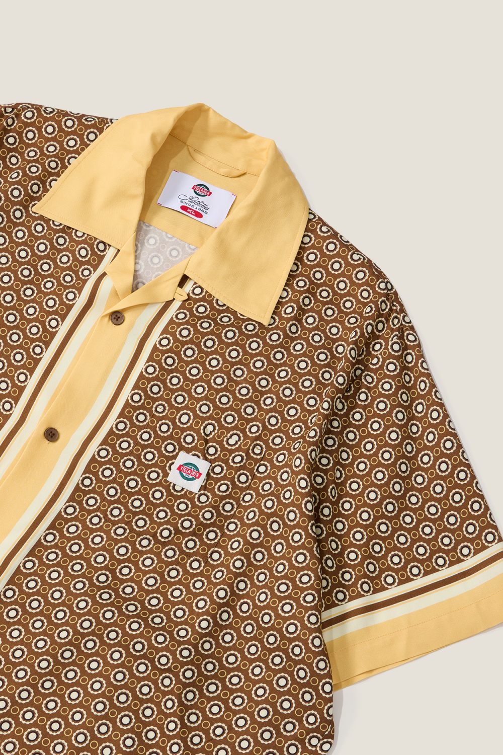 Принтованная рубашка с короткими рукавами из 100% вискозы. Отложной воротник. Фирменный лейбл на переднем кармане. Тип застежки: пуговицы в тон изделия. Цвет: бежевый.