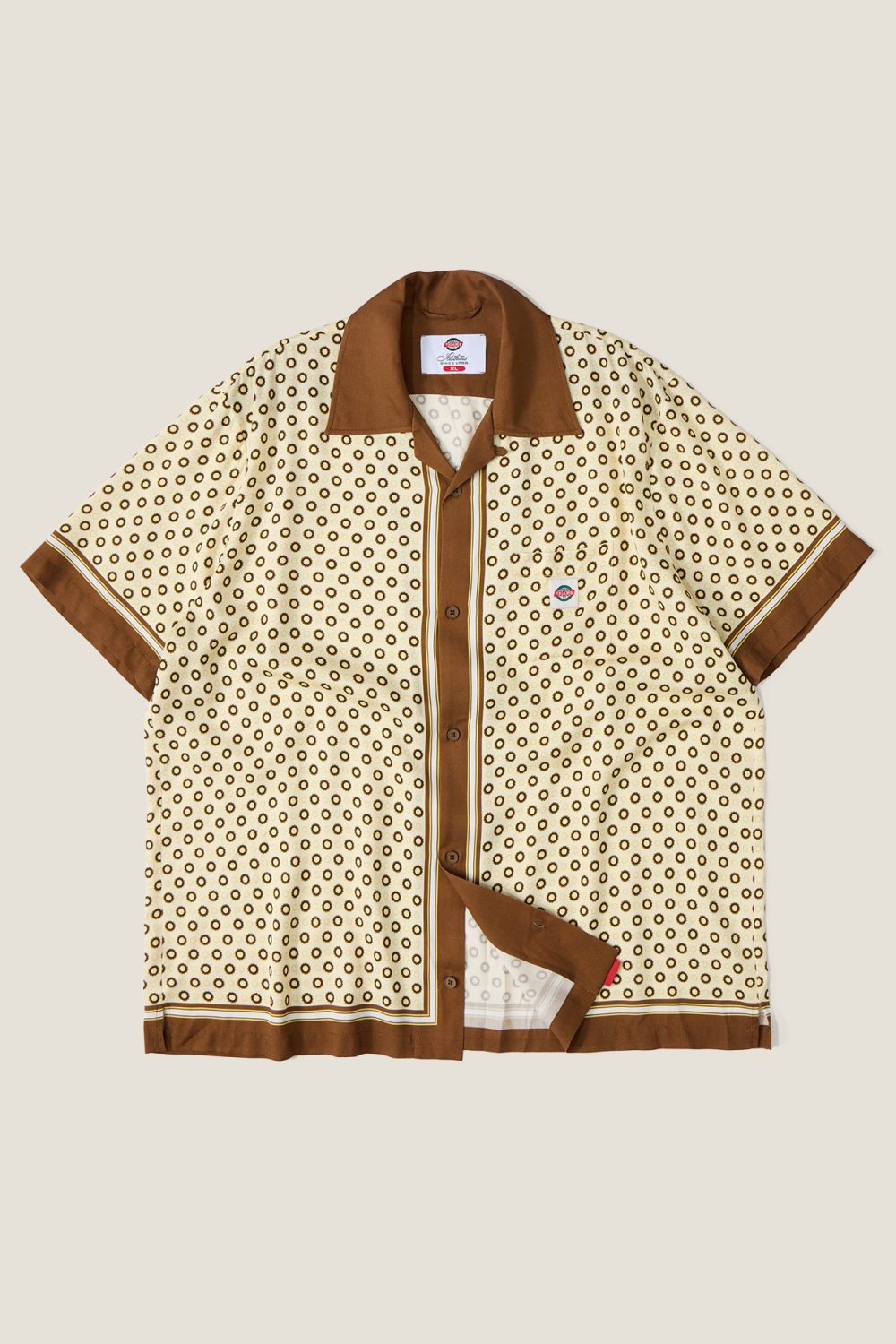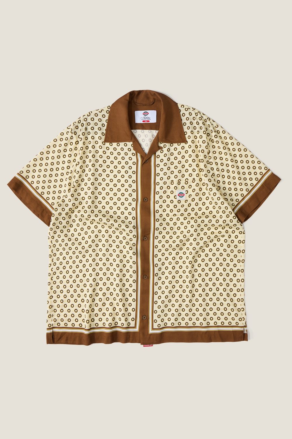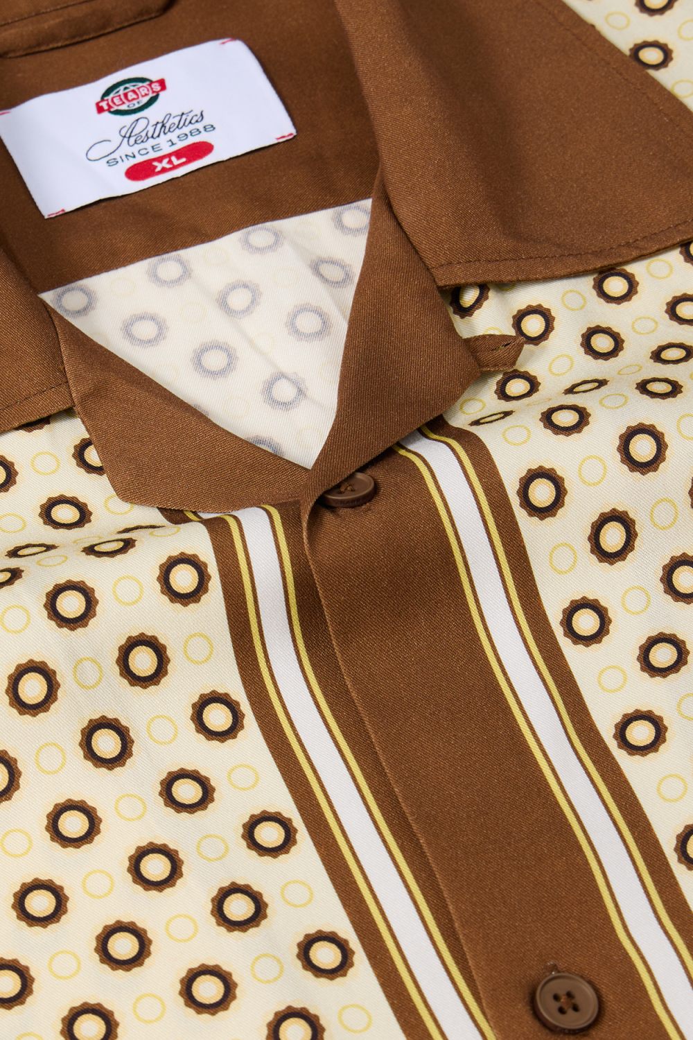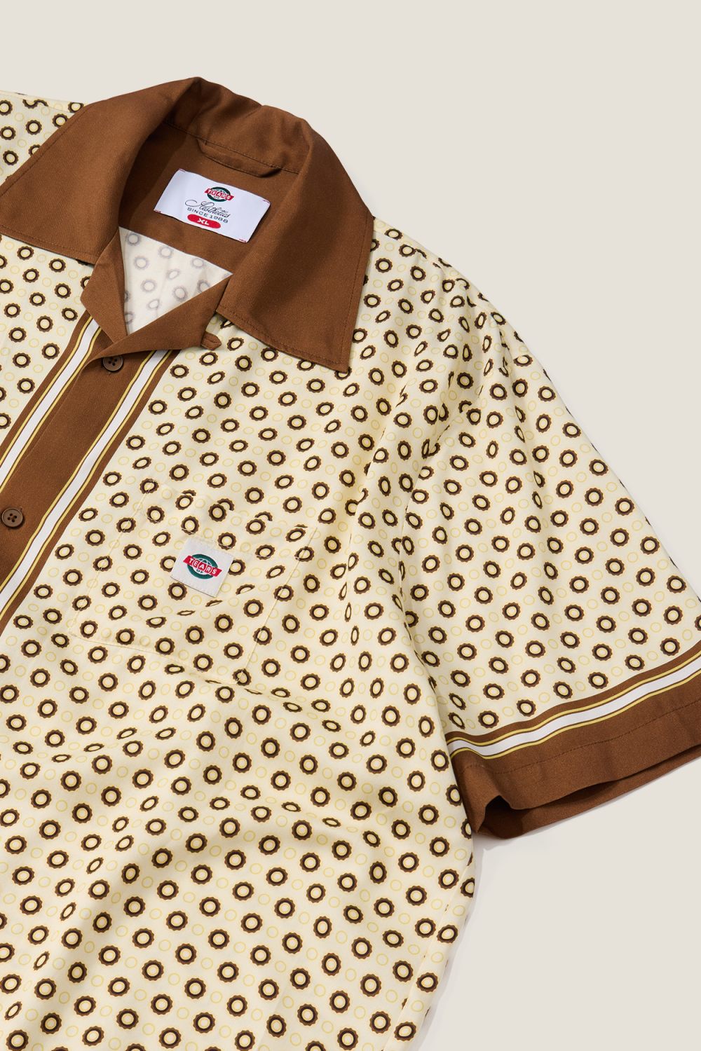 Принтованная рубашка с короткими рукавами из 100% вискозы. Отложной воротник. Фирменный лейбл на переднем кармане. Тип застежки: пуговицы в тон изделия. Цвет: молочный.