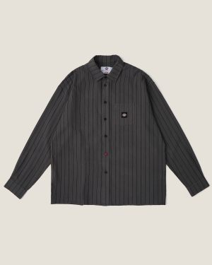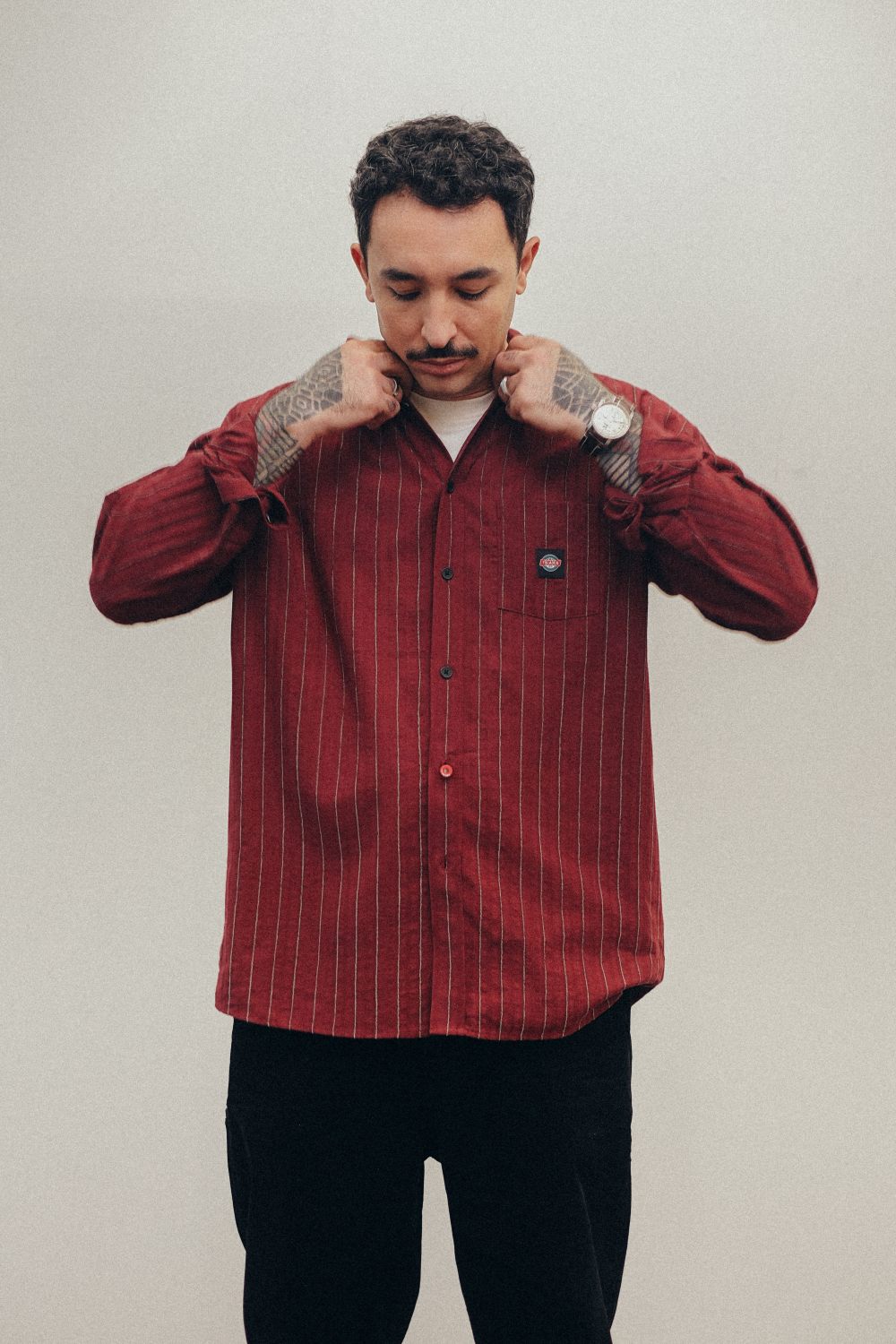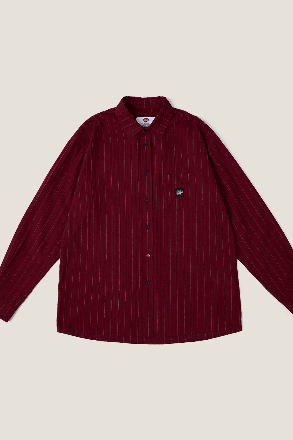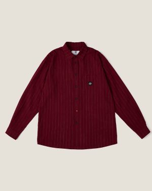 Полосатая рубашка с длинными рукавами из смесового хлопка. Отложной воротник. Цвет: винный. Фирменный лейбл на нагрудном кармане, пуговицы с контрастным эмбоссированием.