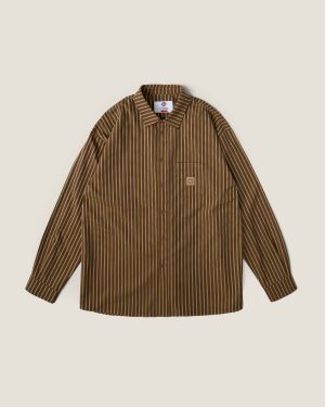 Полосатая рубашка с длинными рукавами из 100% хлопка из коллекции TEARS of Aparté. Отложной воротник. Фирменный лейбл на груди, пуговицы в тон изделия. Нагрудный карман. Жаккардовый флажок с логотипом на спинке. Цвет: коричневый.