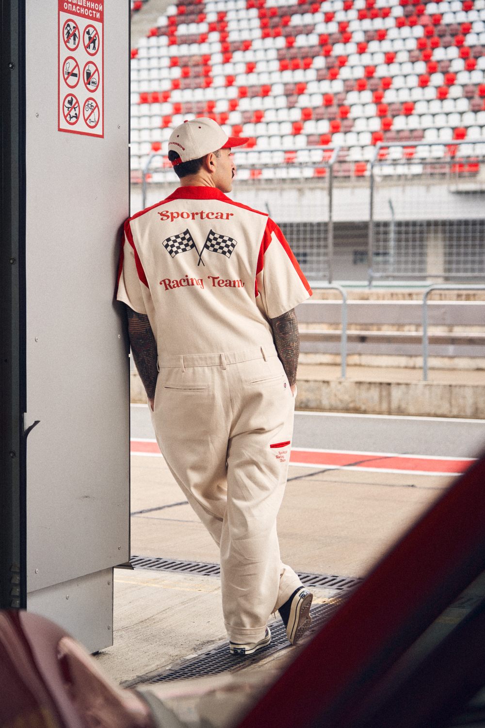 Комбинезон из 100% хлопка из коллекции Tears Of Race. Комбинезон, вдохновленный формой автомеханика, сочетает в себе баланс между работой и отдыхом. Свободный крой, который не сковывает движения. Воротник стойка. Тип застежки: скрытая молния. Карманы: 2 нагрудных кармана, два боковых, два задних прорезных и один на бедре. Принт на спинке SRORTCAR RACING TEAM. Цвет изделия: молочно-красный.