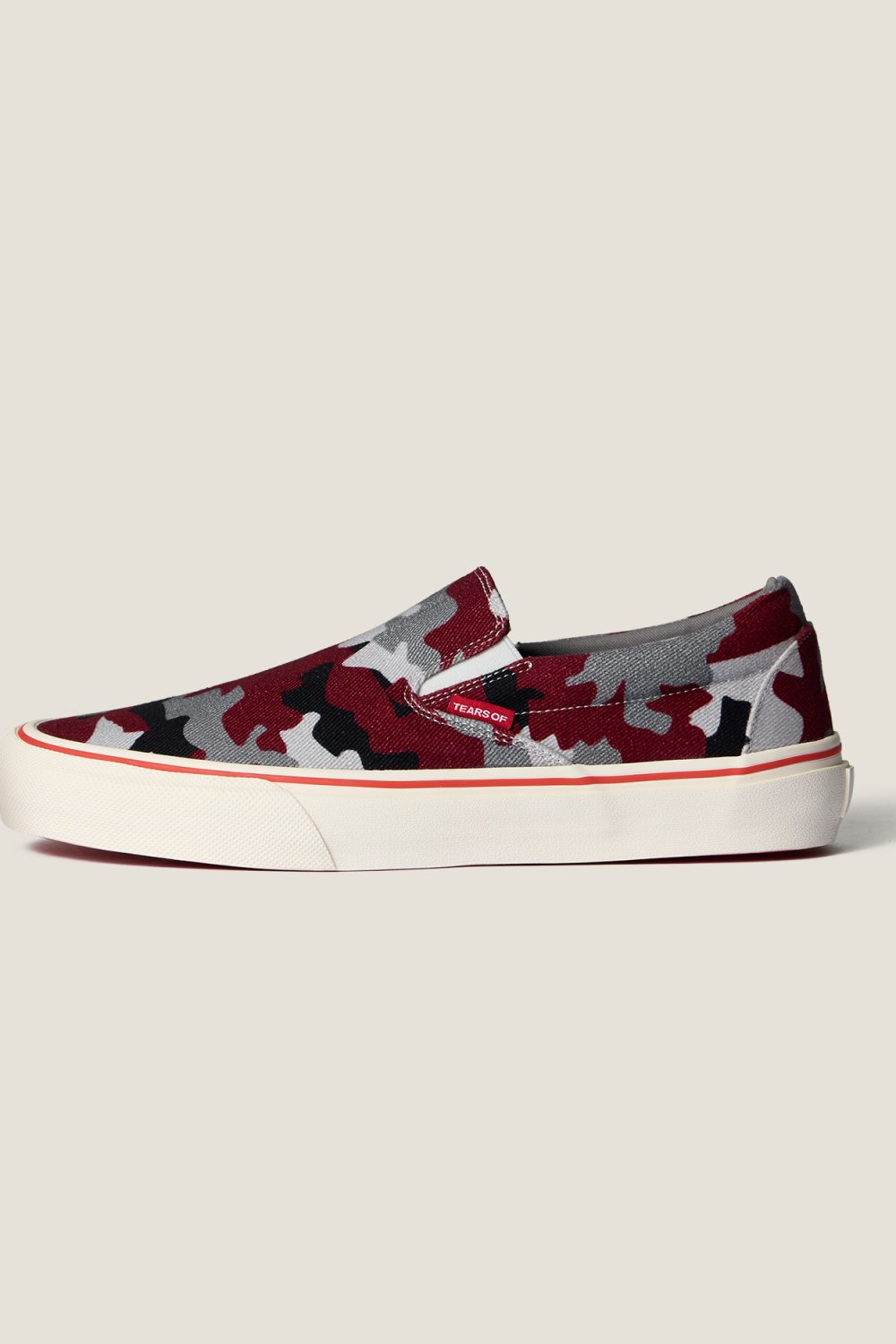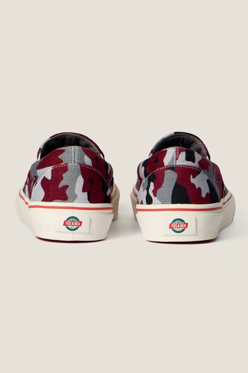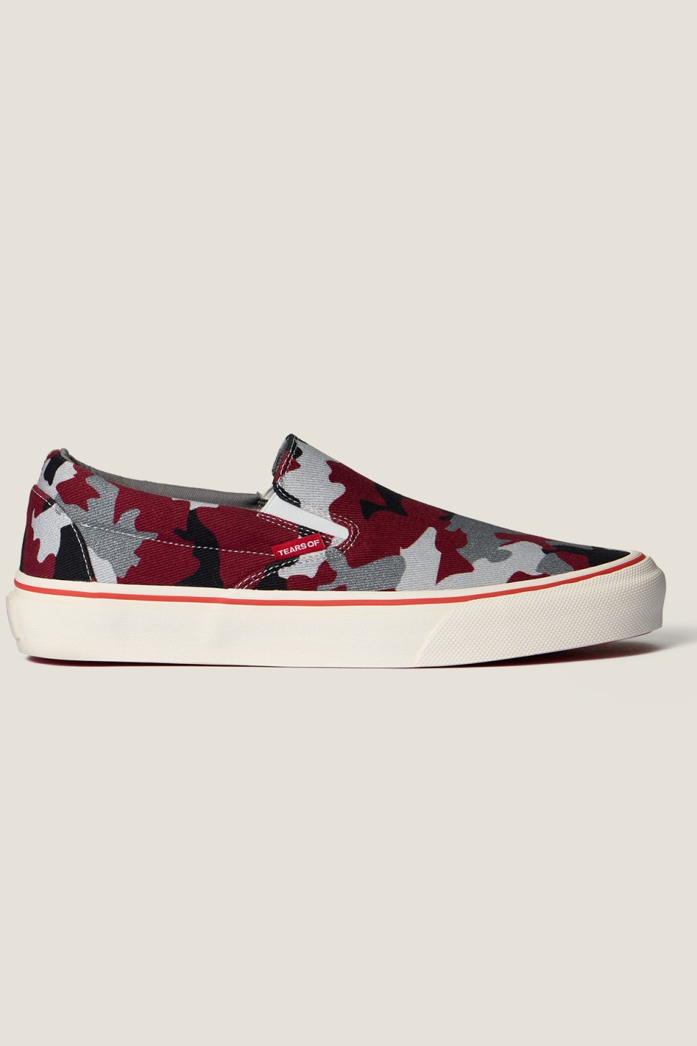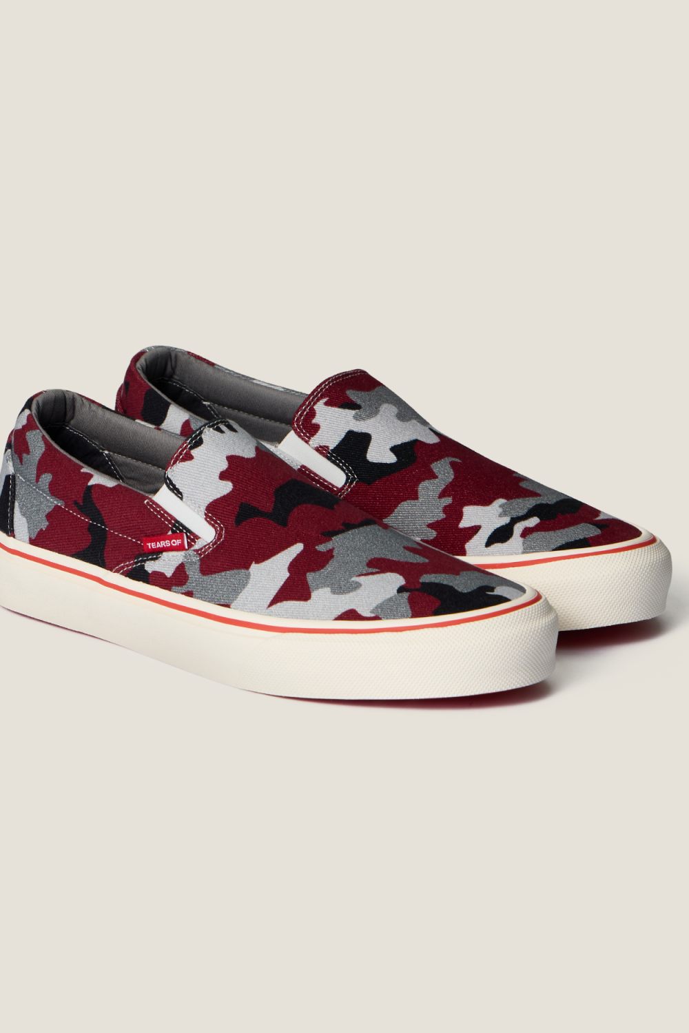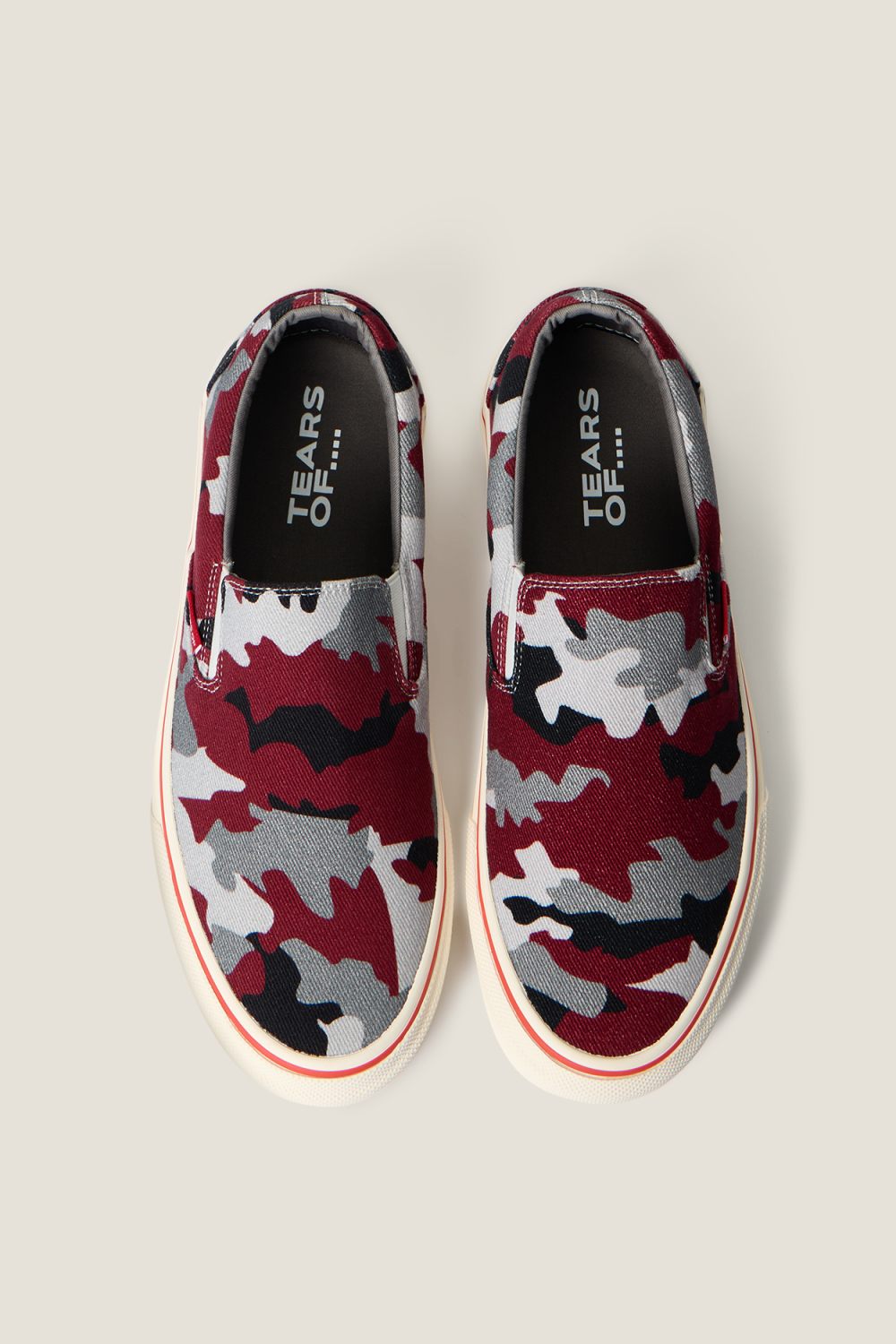 Камуфляжые слипоны. Верх из износостойкого текстиля. Рельефная подошва, обеспечивающая хорошее сцепление с поверхностью. Логотип Tears Of на задней части подошвы.