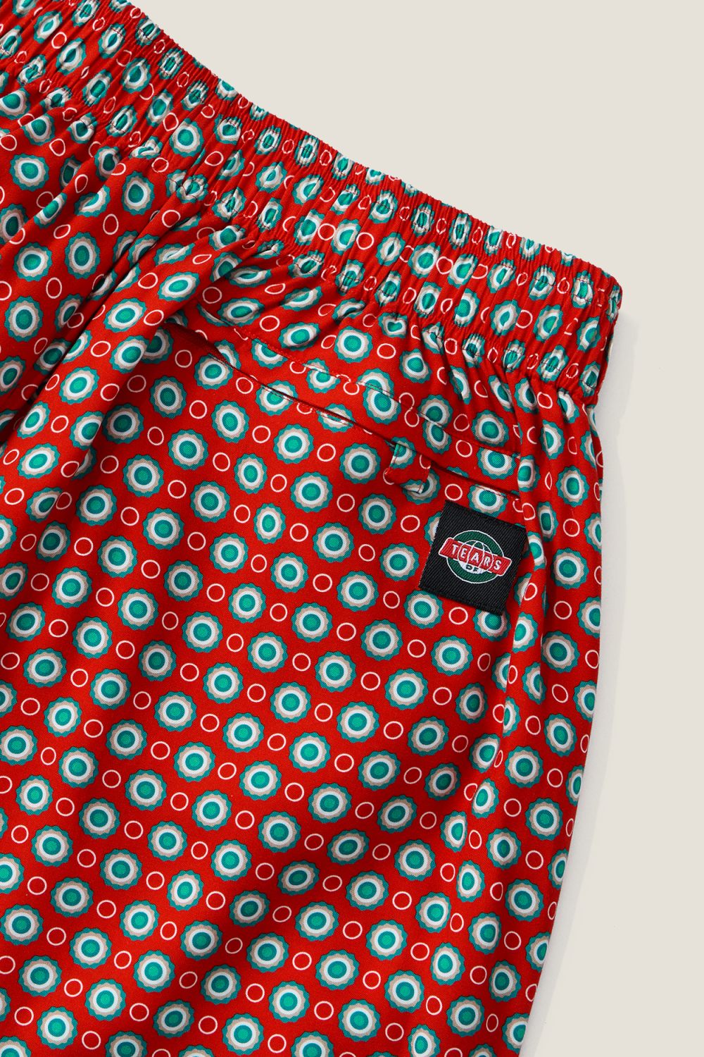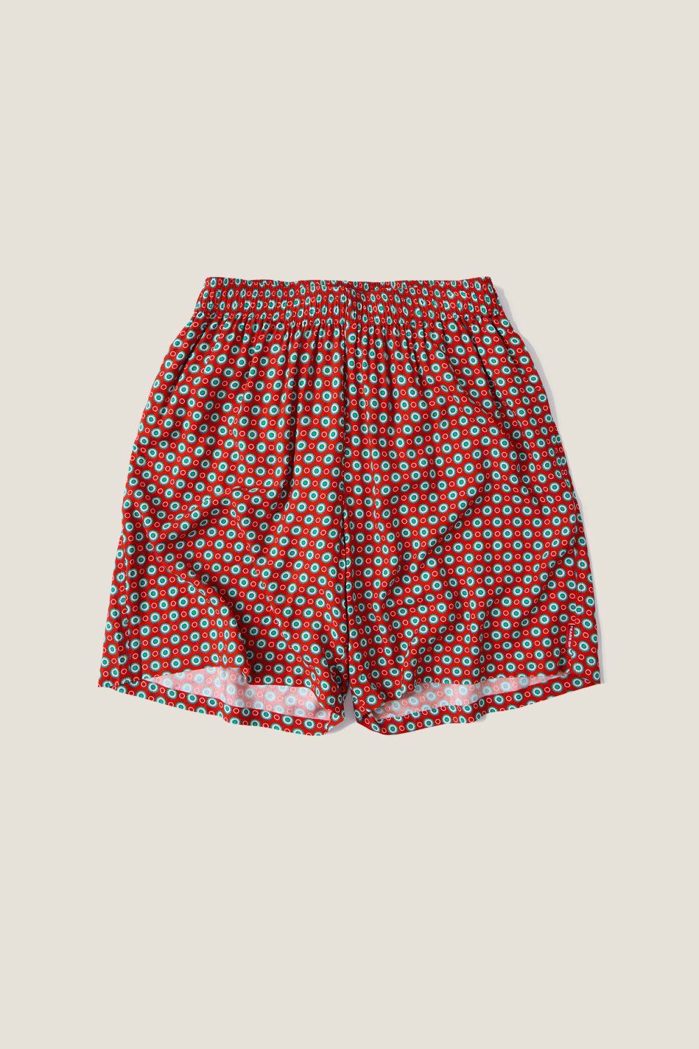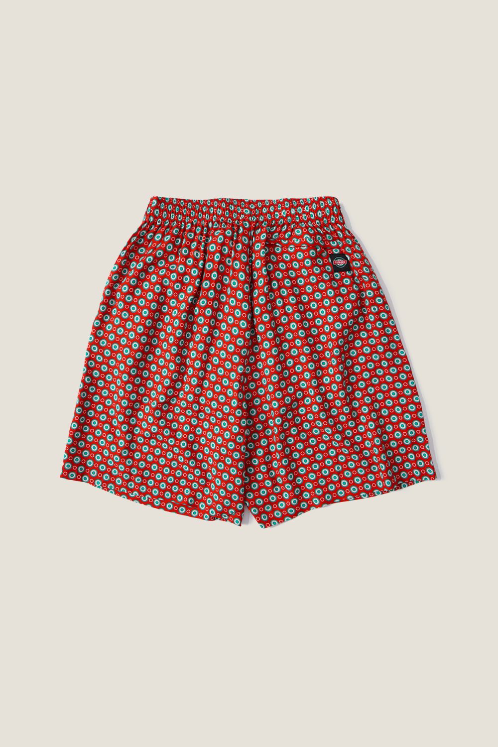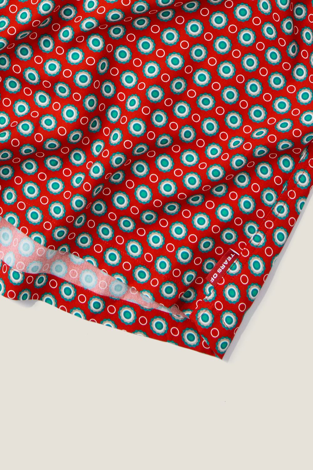 Принтованные шорты из 100% вискозы. Пояс на резинке. Два боковых кармана и один задний на молнии. Фирменный лейбл под задним карманом. Цвет: красный.