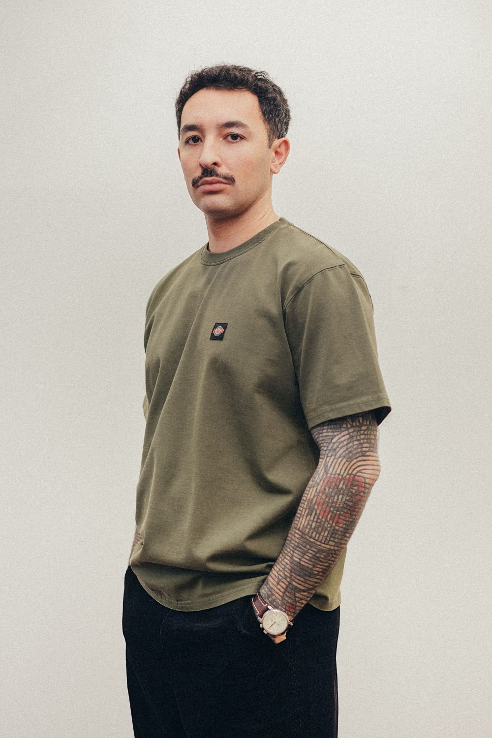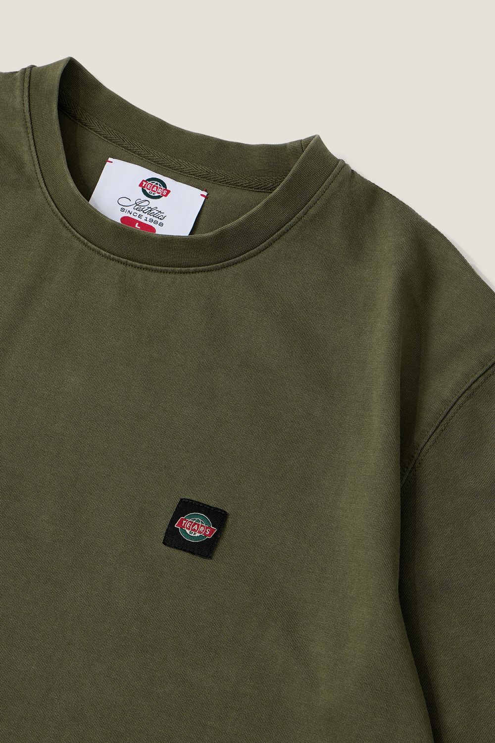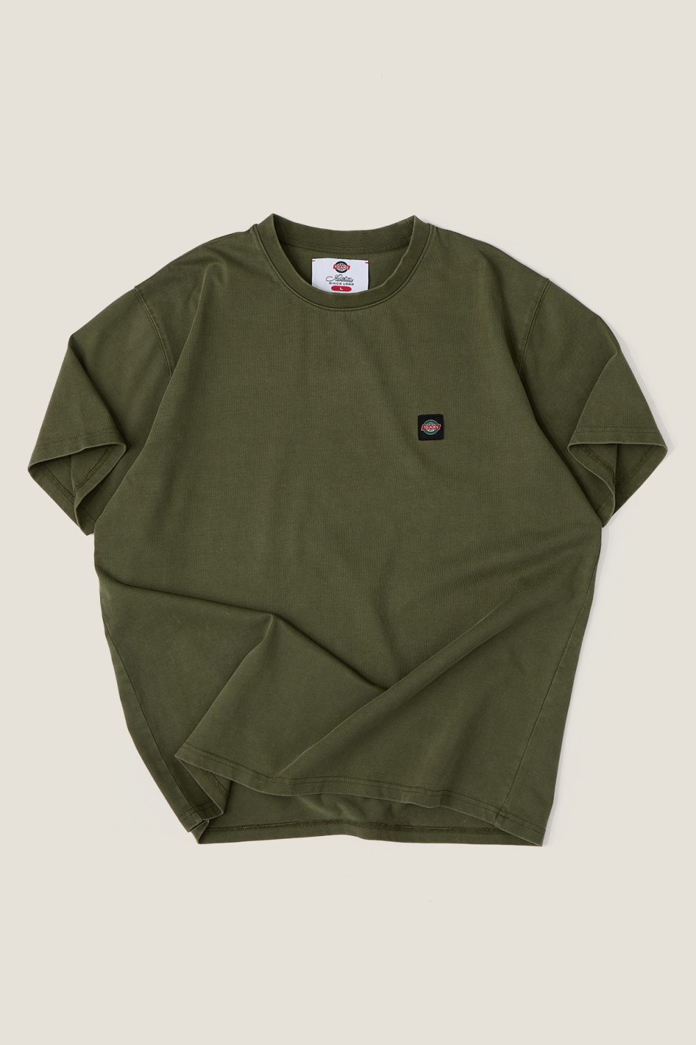 Футболка свободного кроя из 100% хлопка, окрашенная по технике garment dye. Фирменный нашивной лейбл в области груди. Цвет: хаки. О-образный вырез.