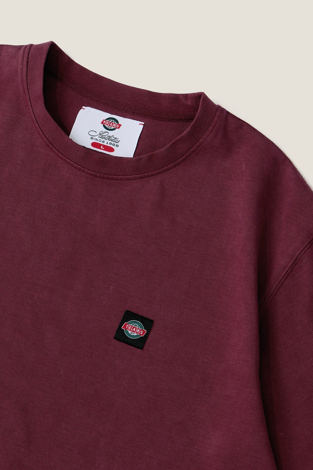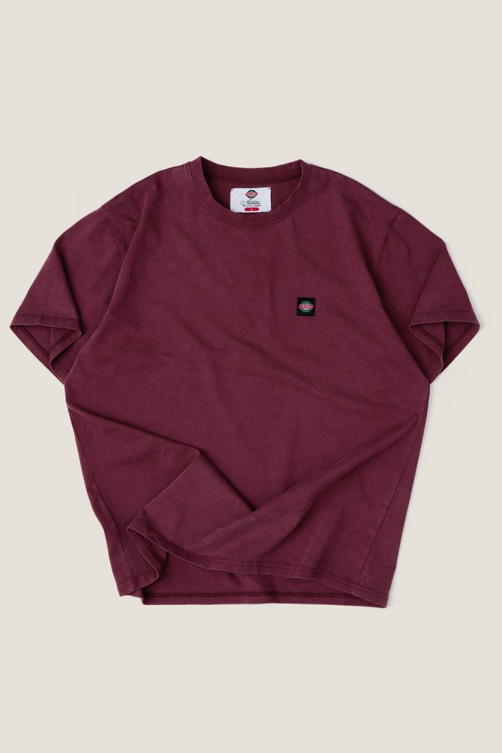 Футболка свободного кроя из 100% хлопка, окрашенная по технике garment dye. Фирменный нашивной лейбл в области груди. Цвет: бордовый. О-образный вырез.